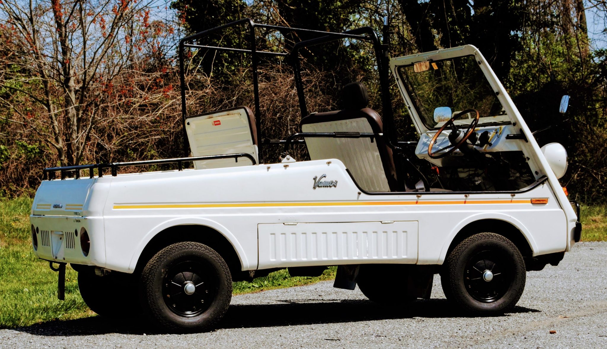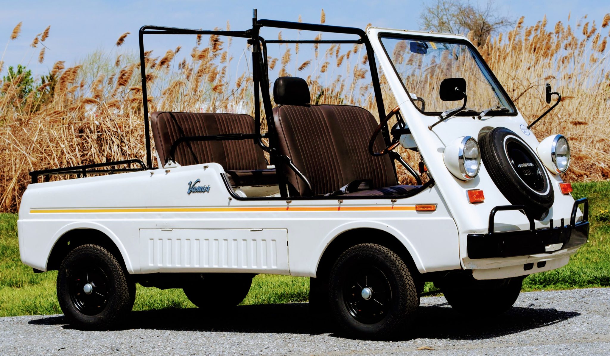 Black 10” steel wheels wear 145R Camac BN 313 tires that are said to have been mounted in February 2022. Suspension is comprised of control arms with tension rods up front as well as a rigid axle with leaf springs out back. Stopping power is provided by drum brakes at both ends.