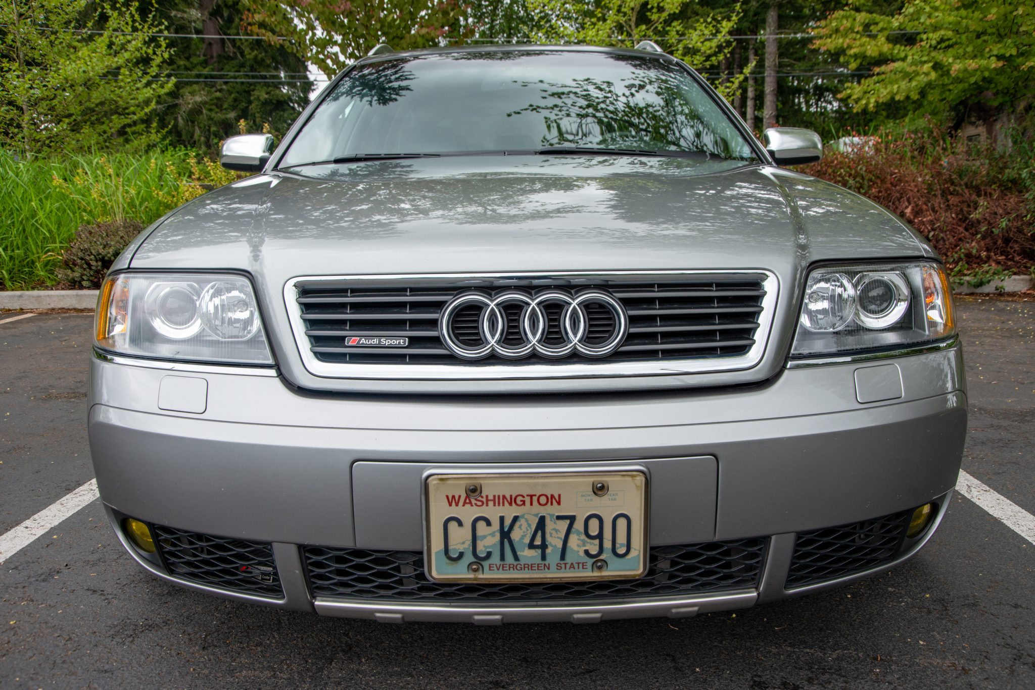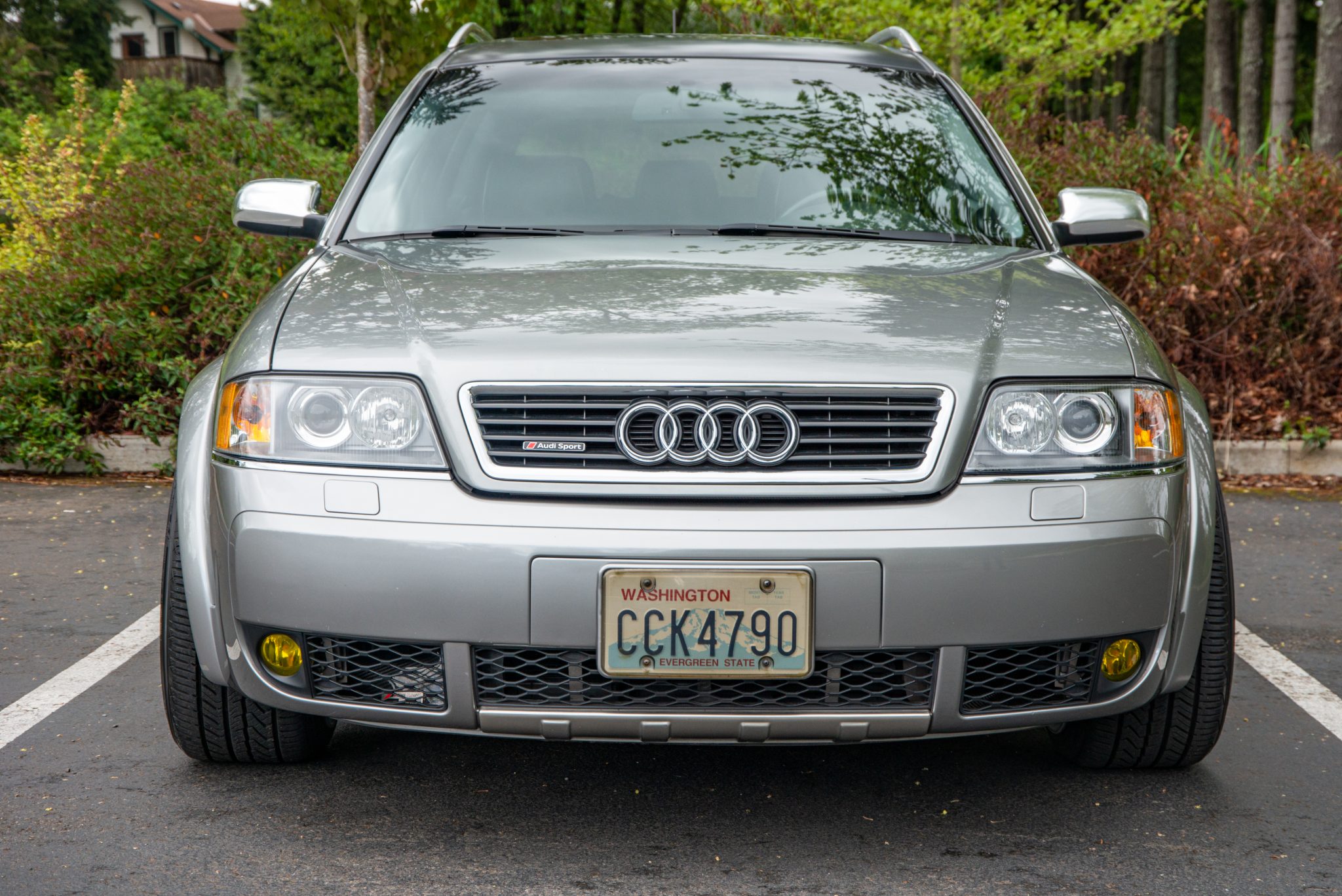 BBS CH-R 20″ alloy wheels are said to be mounted with 3mm wheel spacers and wear 255/35 Yokohama Advan Sport A/S+ tires. The car is equipped with KW V1 coilovers along with Hotchkis front and rear sway bars. Stopping power is provided by Porsche-sourced calipers over JHM two-piece rotors up front accompanied by an Apikol rear big brake kit with RS6-sourced rear calipers. Additional braking system modifications include braided stainless-steel brake lines.
