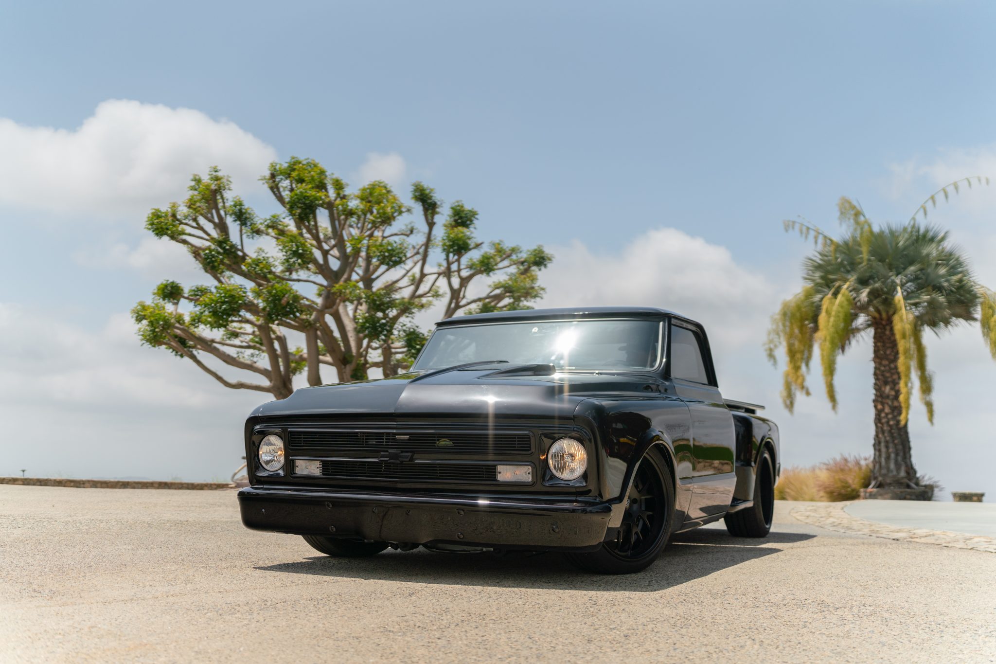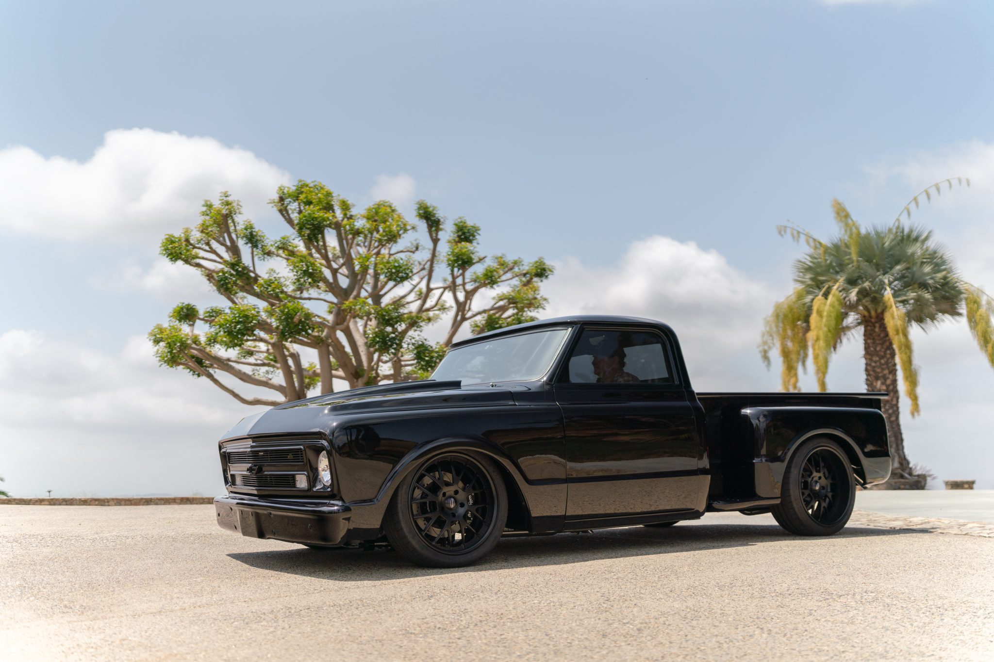 Forged 20″ Boze wheels are mounted with Michelin Pilot Super Sport tires. The truck is equipped with dropped front spindles, Strong Arms upper and lower control arms, and an Air Ride Technologies adjustable air suspension. Stopping power is provided by Wilwood calipers over drilled and slotted rotors at all four corners.
