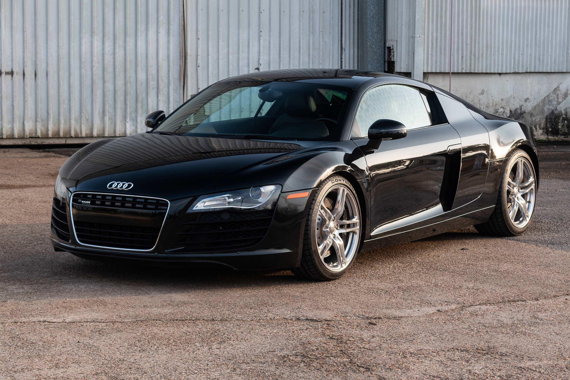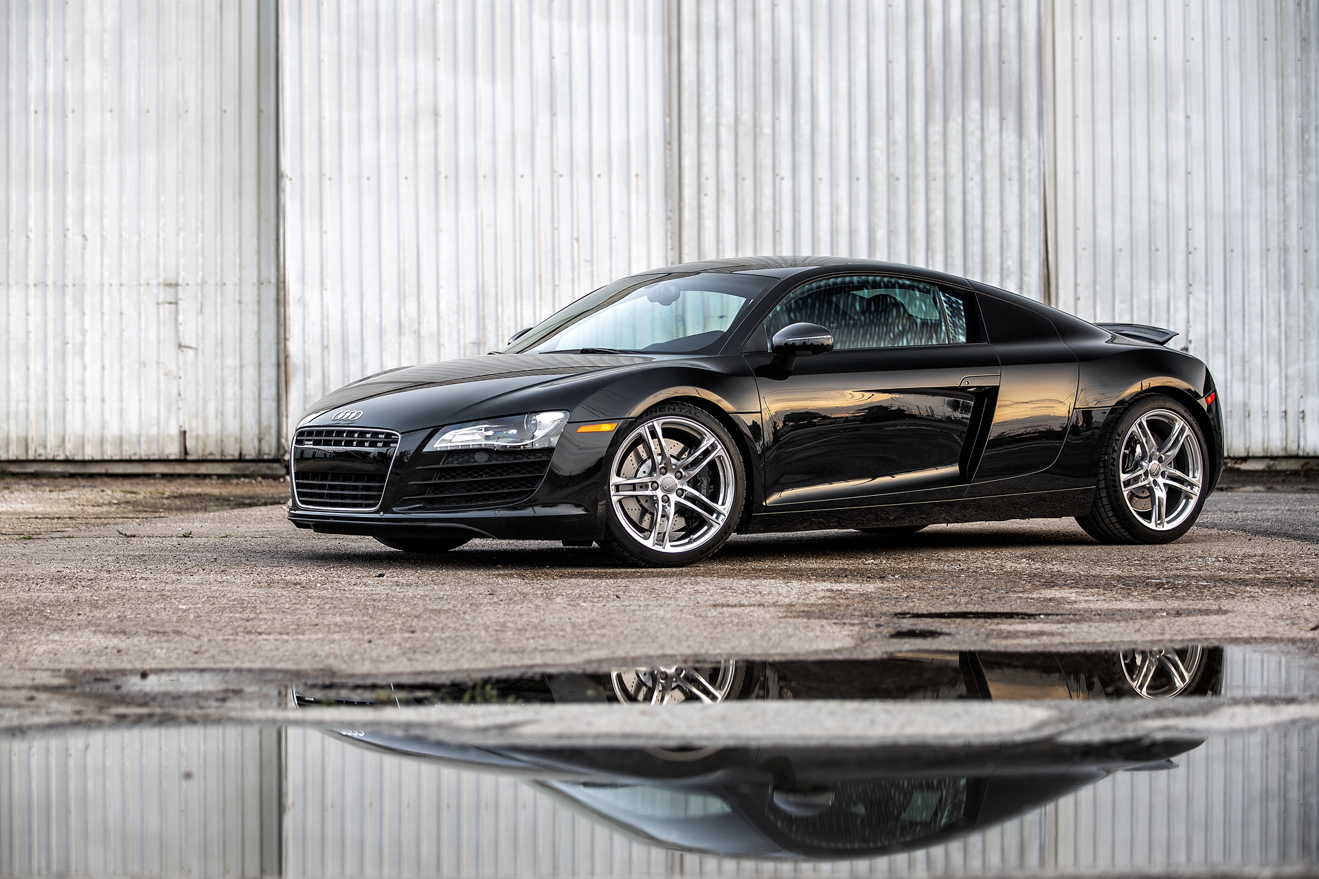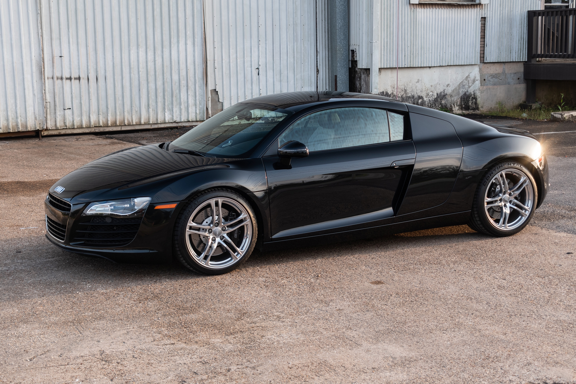 Polished 19″ alloy wheels are wrapped in 235/35 front and 305/30 rear Continental ExtremeContact DW Tuned tires. The car is equipped with magnetorheological Audi Magnetic Ride dampers, and braking is handled by four-wheel ventilated and cross-drilled discs paired with R8-branded calipers.
