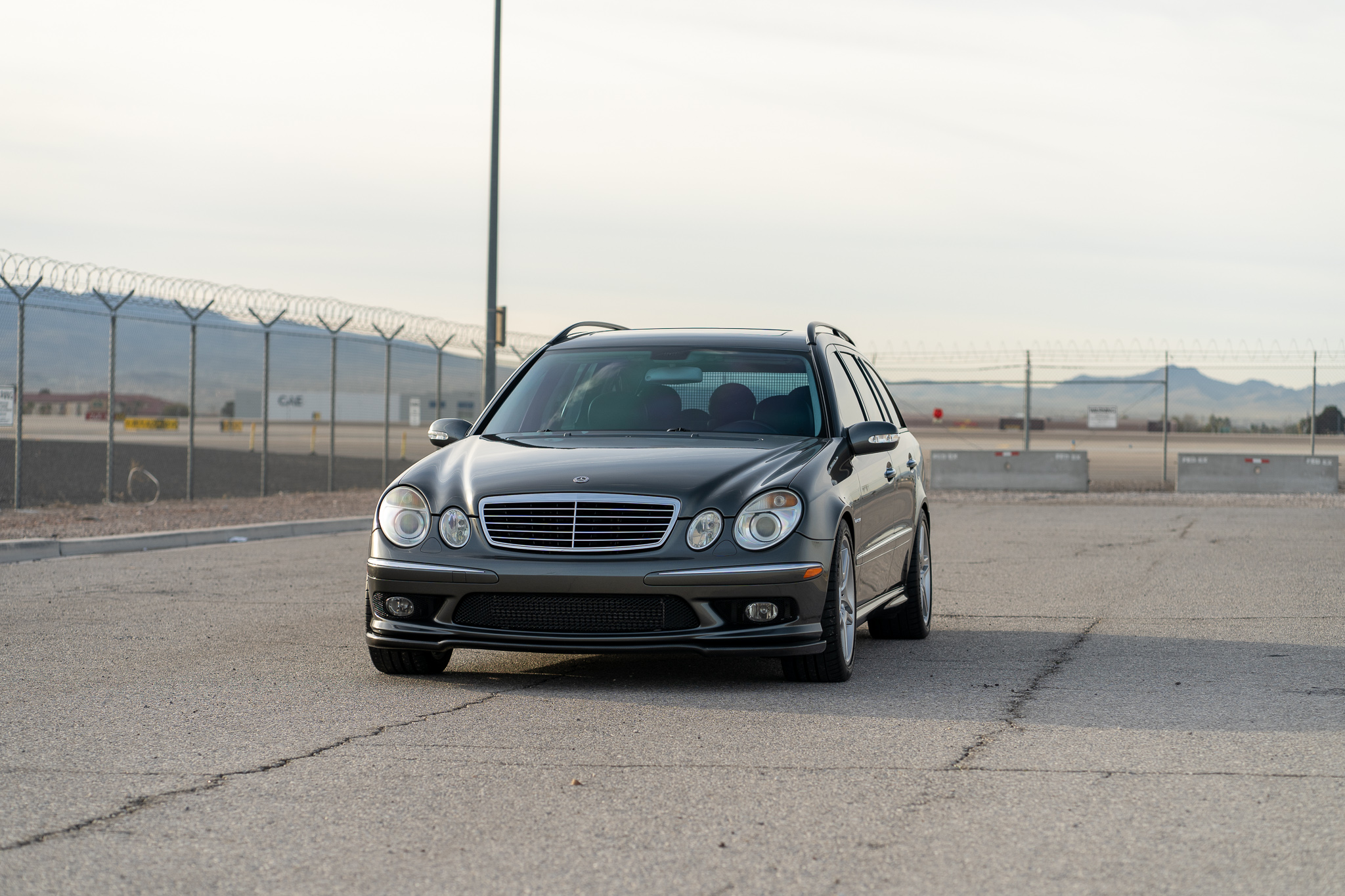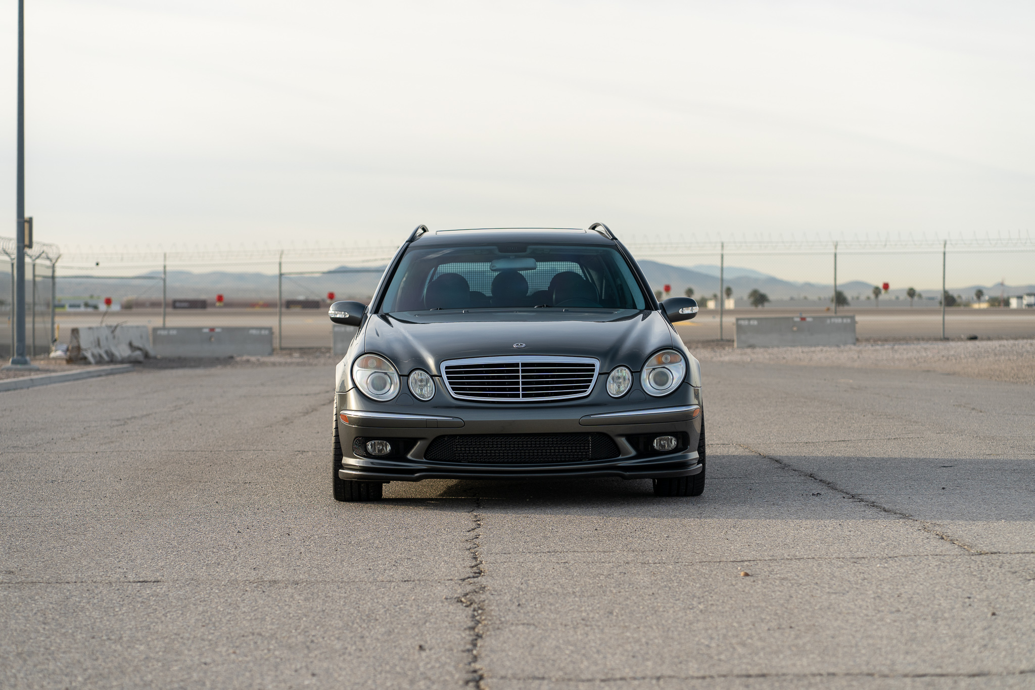 Silver 18″ AMG double-spoke wheels are mounted with 245/40 front and 265/35 rear Michelin Pilot Sport 4S tires. The car features three driving modes and Airmatic air suspension. Stopping power is provided by silver AMG-branded calipers over cross-drilled rotors at all four corners.