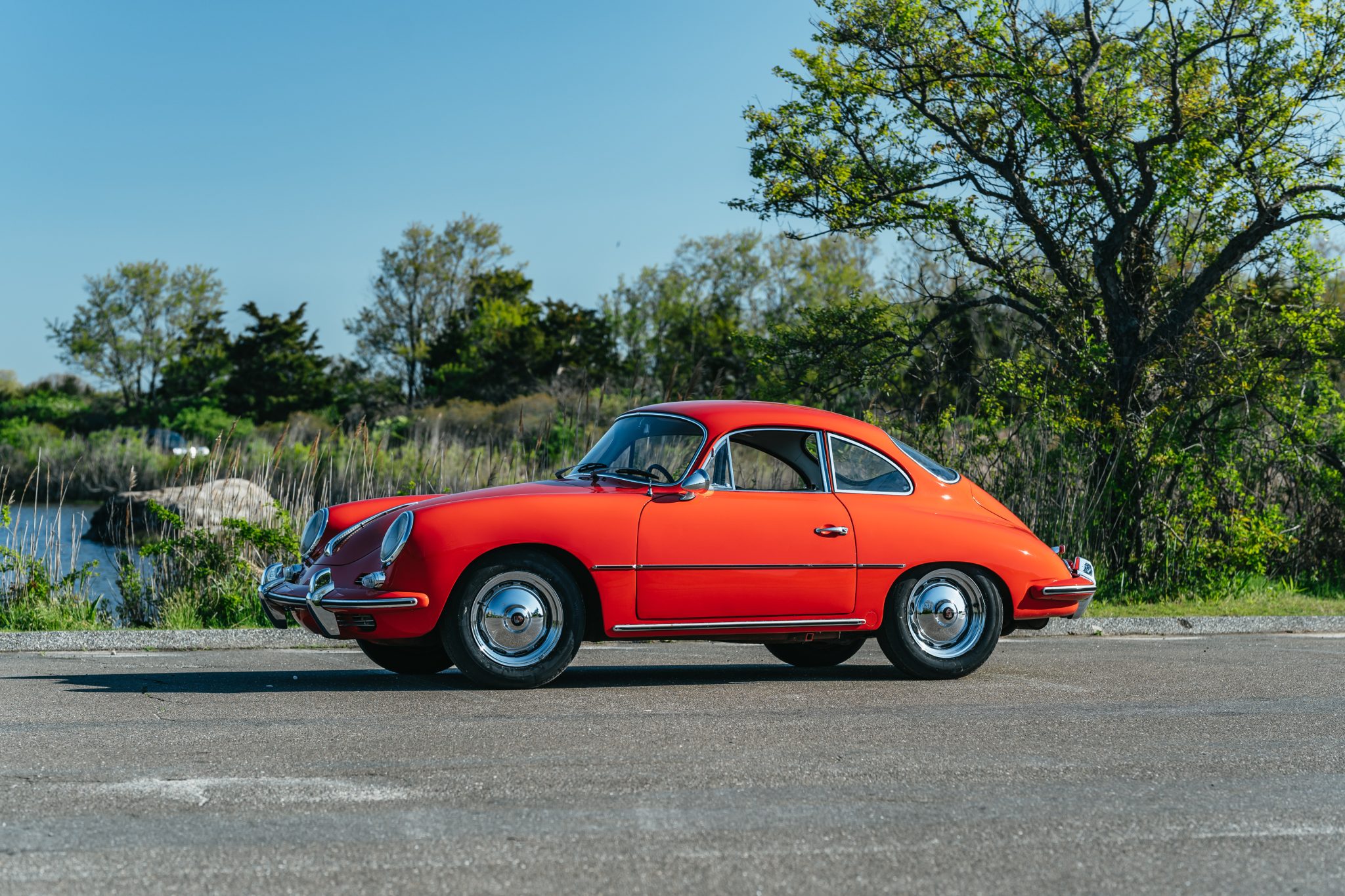 Chrome 15” steel wheels sourced from a Volkswagen model feature polished hubcaps with Porsche center crests, and replacement tires were installed in March 2022. At the same time the brake system was overhauled, which included resurfacing the front drums and replacing the shoes and wheel cylinders. The front and rear brake hoses were also replaced in March 2022, and the system was bled.