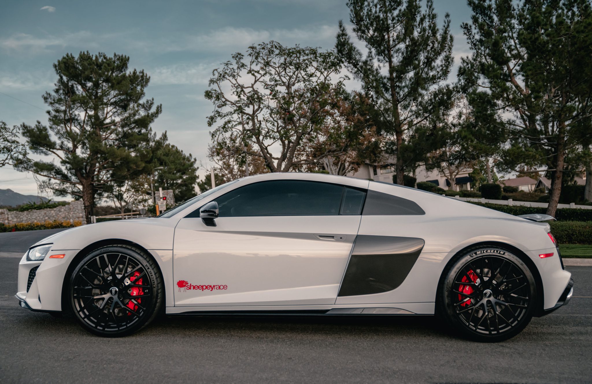 Forged 20″ Y-design wheels are finished in black and are mounted with Michelin Pilot 4S tires showing 2019 date codes that measure 245/30 up front and 305/30 out back. Stopping power is provided by red multi-piston calipers and scalloped cross-drilled rotors all around.