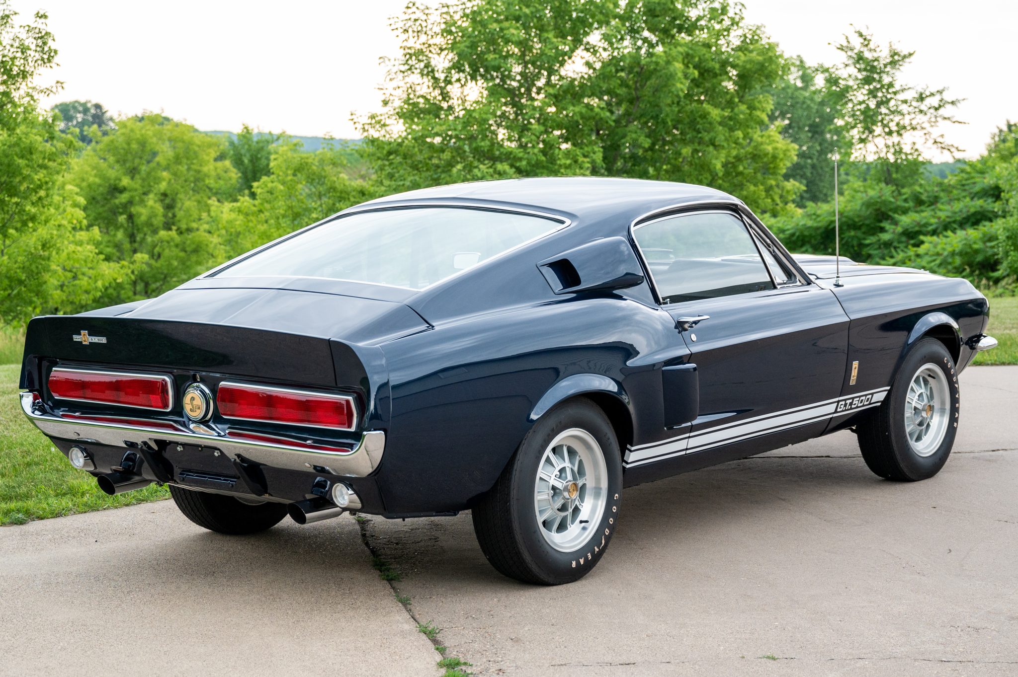 The 15″ 10-spoke wheels wear Shelby Cobra center caps and are mounted with F70-15 Goodyear white-letter tires. The car is equipped with power steering, and braking is provided by power-assisted front discs and rear drums. GT500 models utilized an upgraded suspension system with heavy-duty coil springs and an anti-roll bar up front in addition to heavy-duty leaf springs out back. The shock absorbers were also upgraded compared to a standard Mustang.