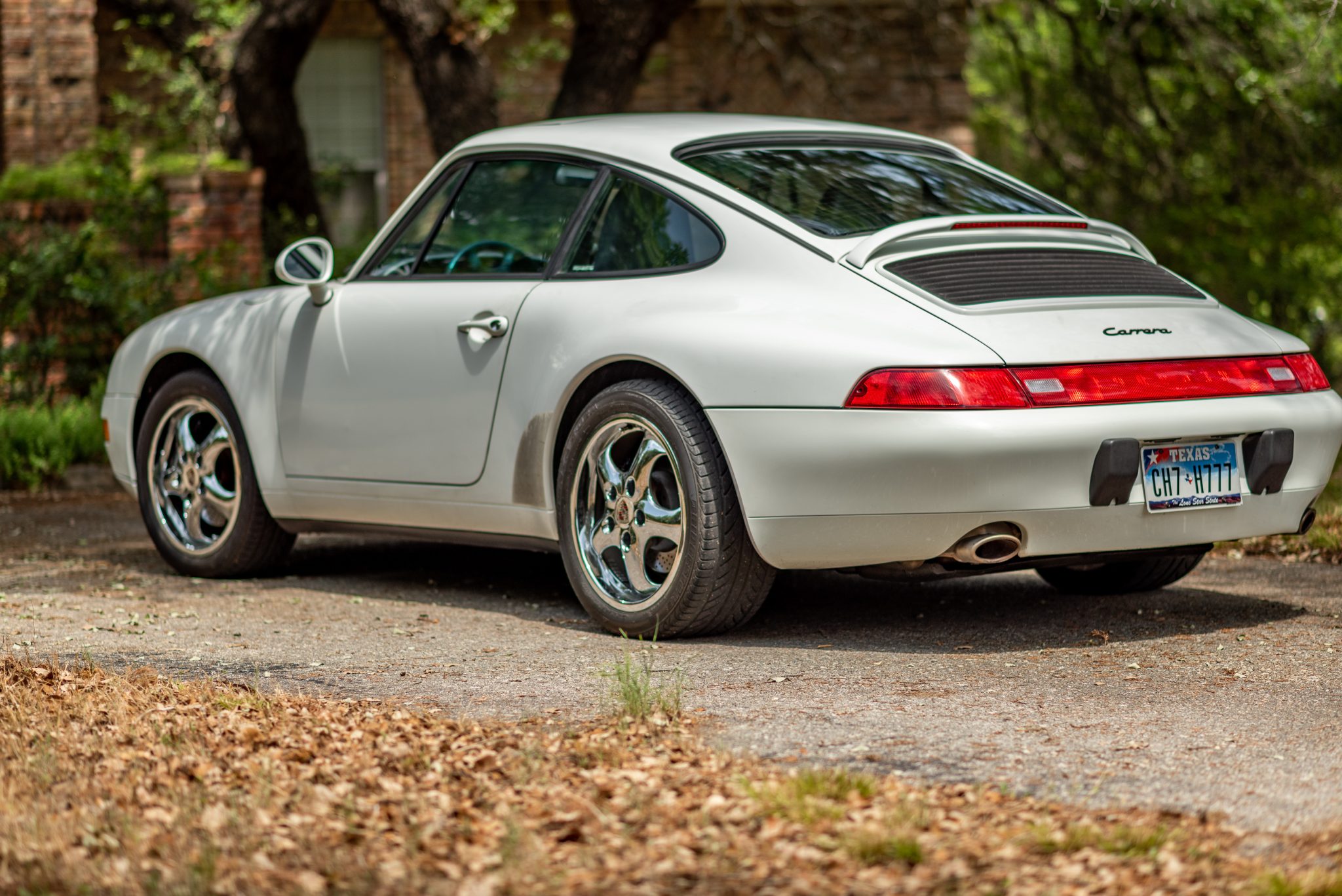 Chrome-finished 17″ Cup II wheels are wrapped in 205/50 front and 255/40 rear Bridgestone Potenza S-024A tires showing 2010 and 2011 date codes. Braking is handled by Porsche-branded calipers over cross-drilled rotors at each corner.
