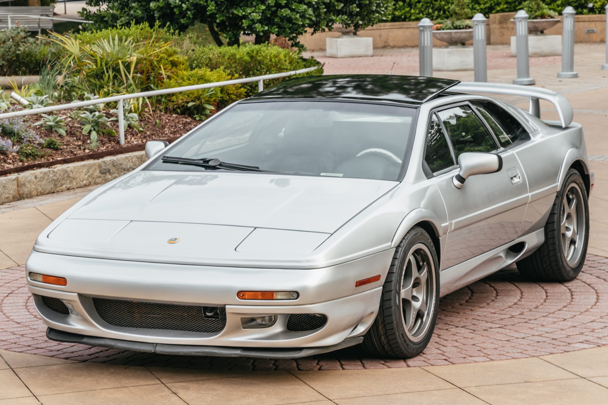 Five-spoke 17″ front and 18″ rear OZ Racing Magnesio wheels are mounted with Nitto NT555 G2 rubber measuring 265/45 and 285/40, respectively. The tires are said to have been mounted in preparation for the sale, and the seller notes that chipping paint is visible on the wheels. Stopping power is provided by two-piece cross-drilled rotors at all four corners with Lotus-branded AP Racing calipers up front, and the emergency brake is said to have been serviced under previous ownership in 2020.