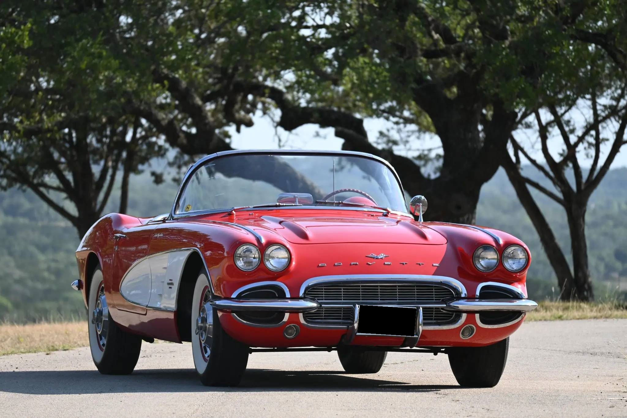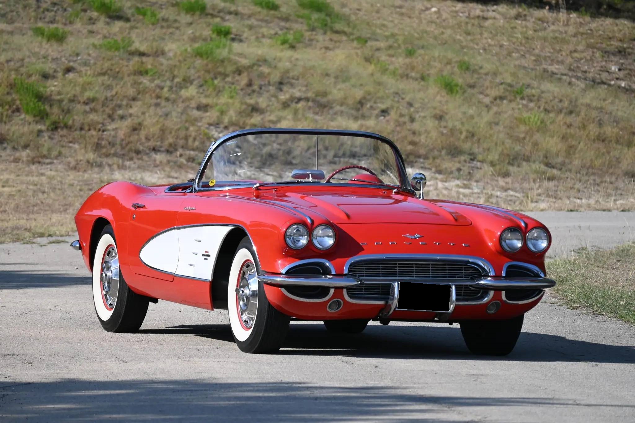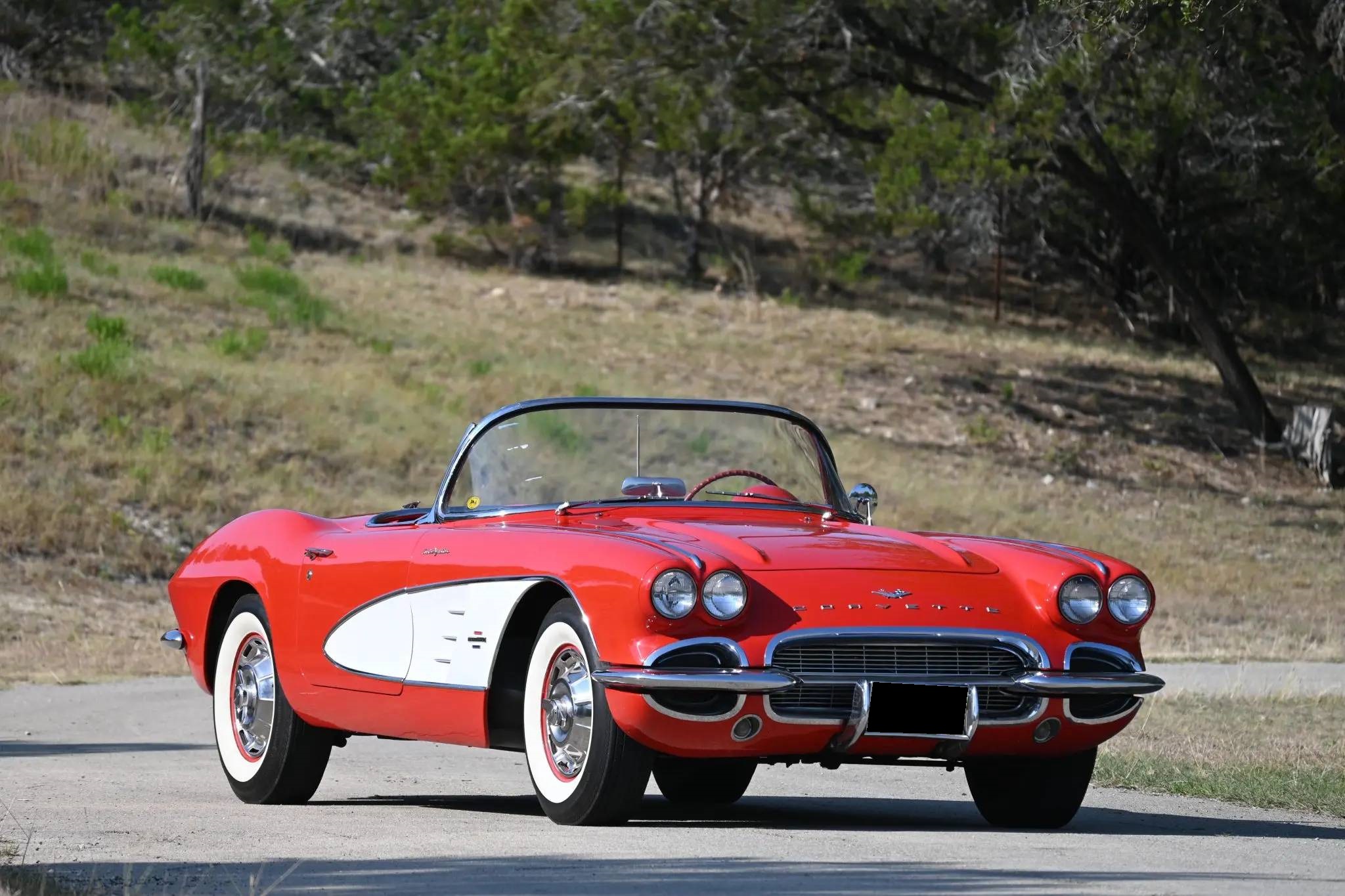 Color-keyed 15″ steel wheels wearing vented chrome covers with faux knock-off spinners are wrapped in whitewall tires. Stowage for a full-size spare is provided beneath the trunk floor. Drum brakes are equipped at all four corners.