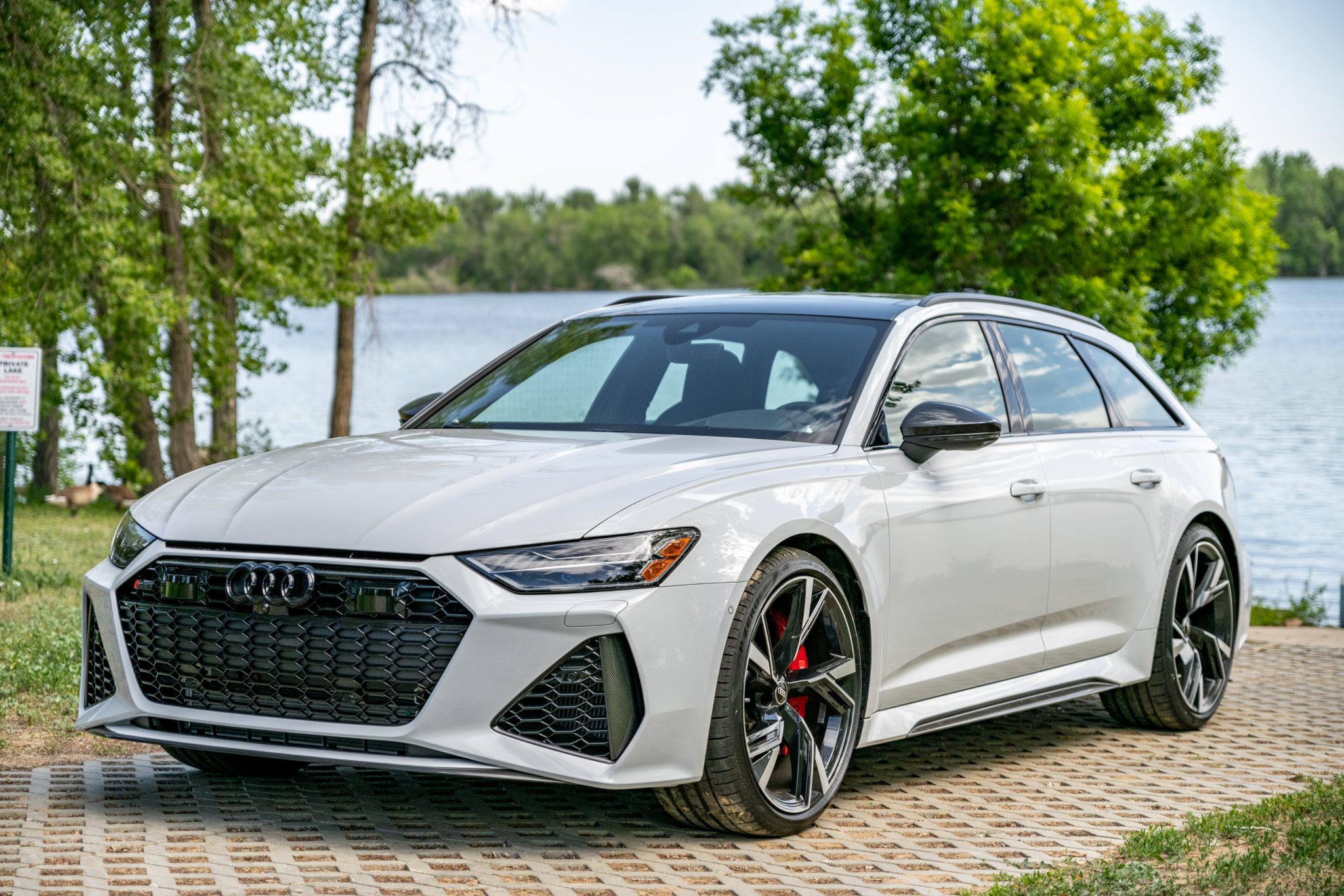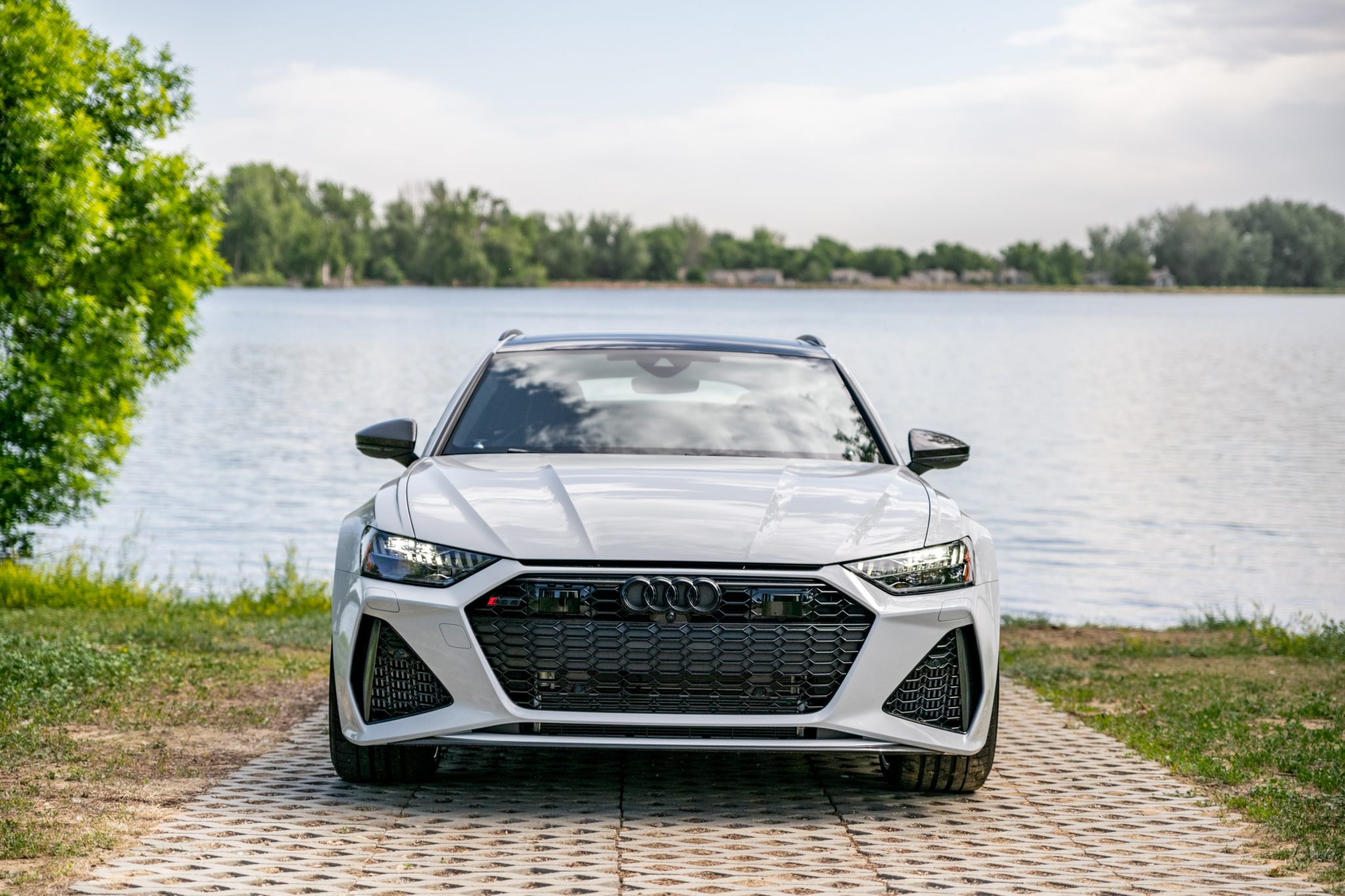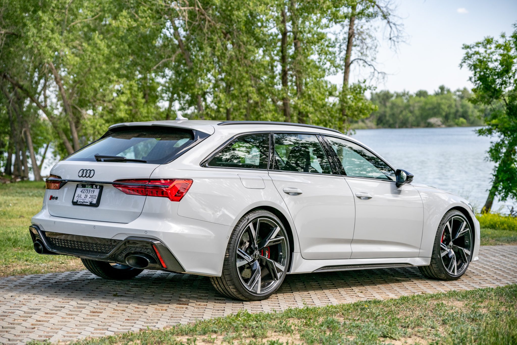 Optional 22″ five-V-spoke trapezoidal-design wheels are mounted with 285/30 Pirelli P Zero tires. Braking is handled by cross-drilled discs with red RS-branded calipers at each corner. The car is equipped with all-wheel steering and dynamic ride control suspension.