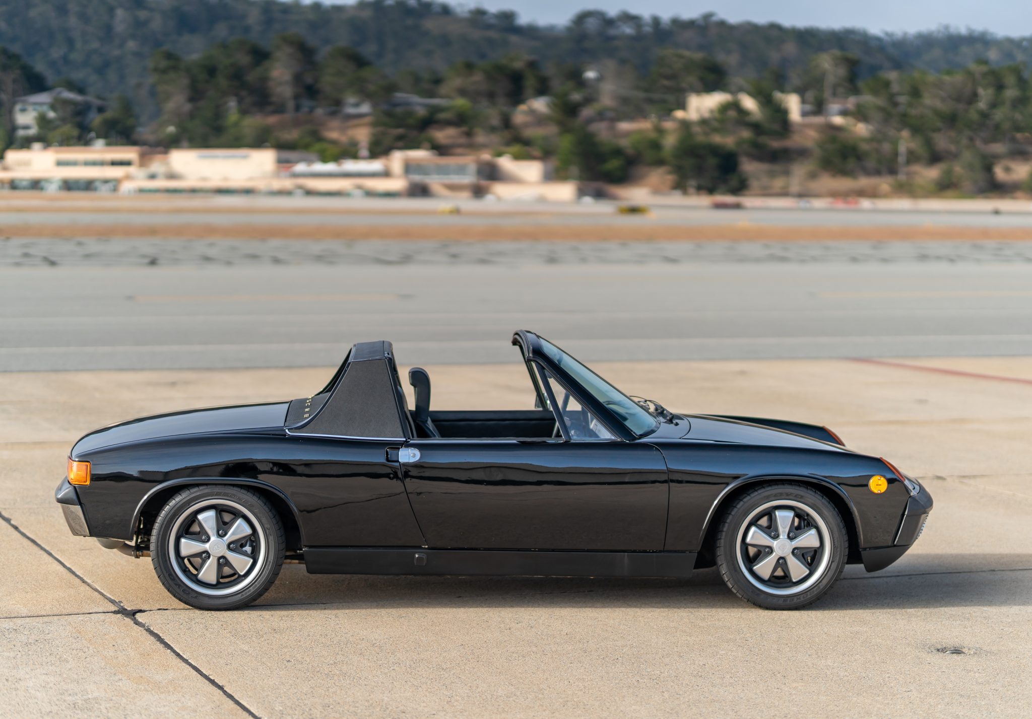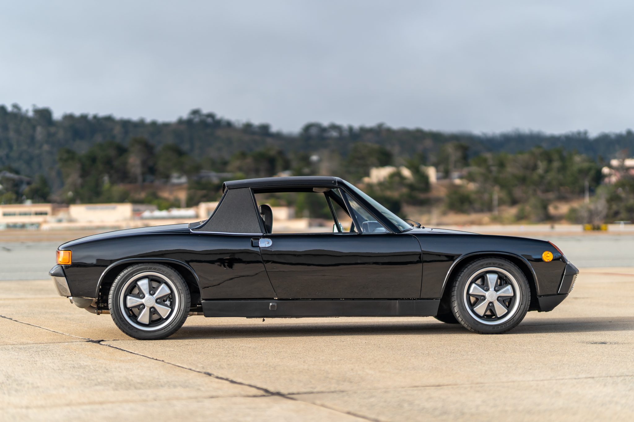 Fuchs-style 15″ wheels feature Porsche-crest center caps and wear 195/50 Toyo Proxes R1R tires. Stopping power is provided by four-wheel disc brakes.