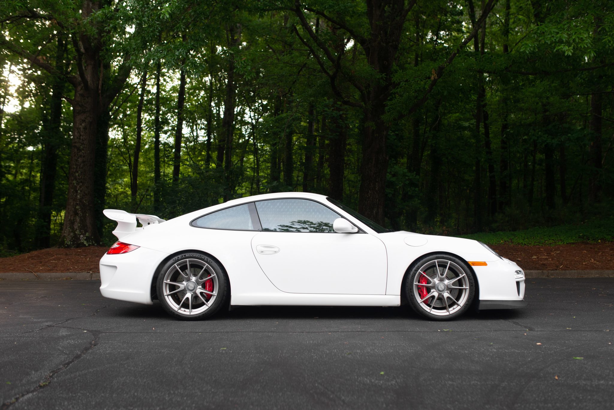 Silver 19″ center-locking multi-spoke wheels are mounted with Michelin Pilot Sport Cup 2 tires measuring 235/35 up front and 305/30 out back. Braking is handled by Porsche-branded six-piston front and four-piston rear calipers over rotors measuring 15″ and 13.8″ front and rear, respectively. The selling dealer states that the car is equipped with a Road Sport Supply rear adjustable toe steer kit and an adjustable rear link kit. The brake fluid was reportedly changed in September 2021.