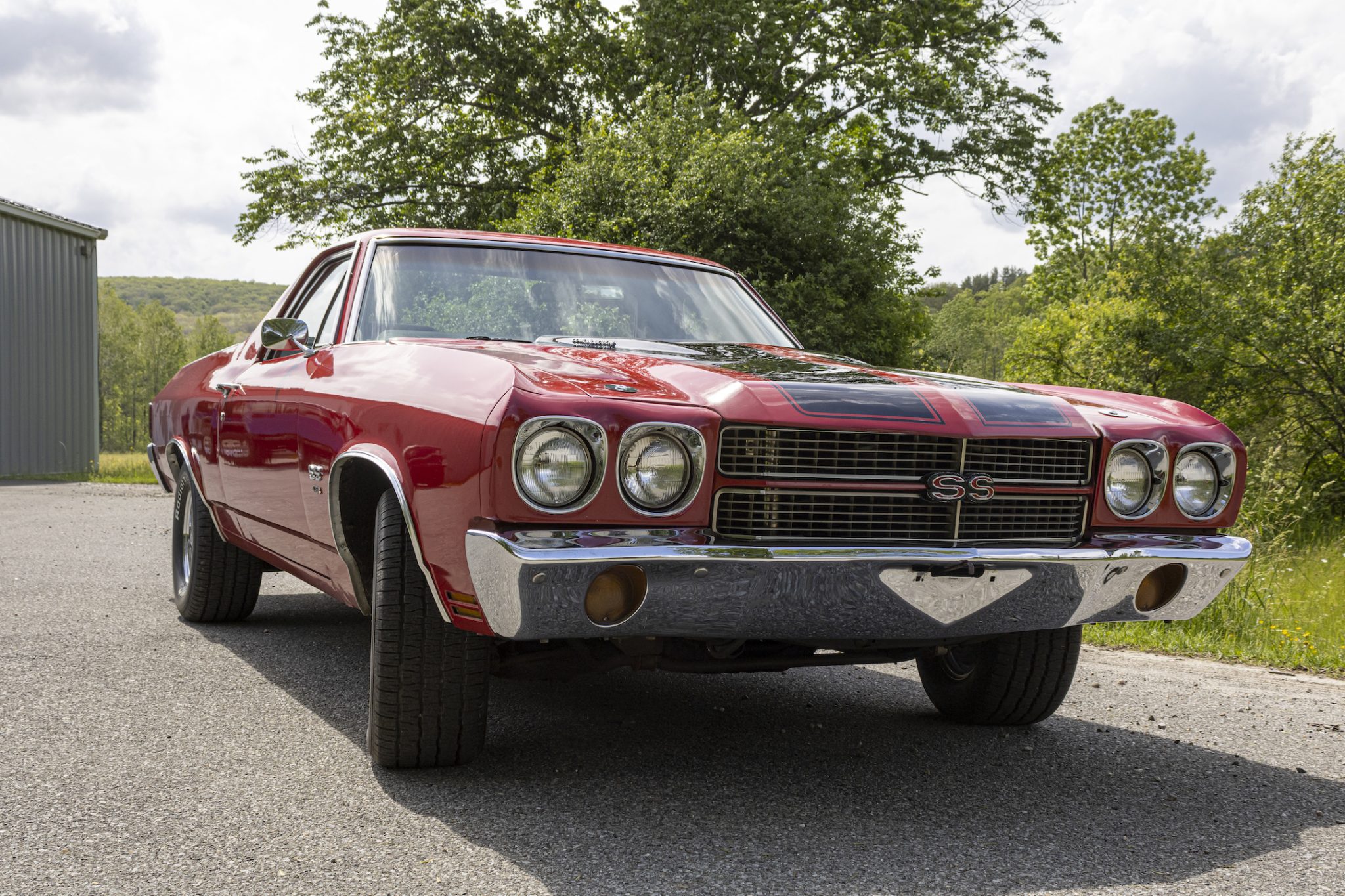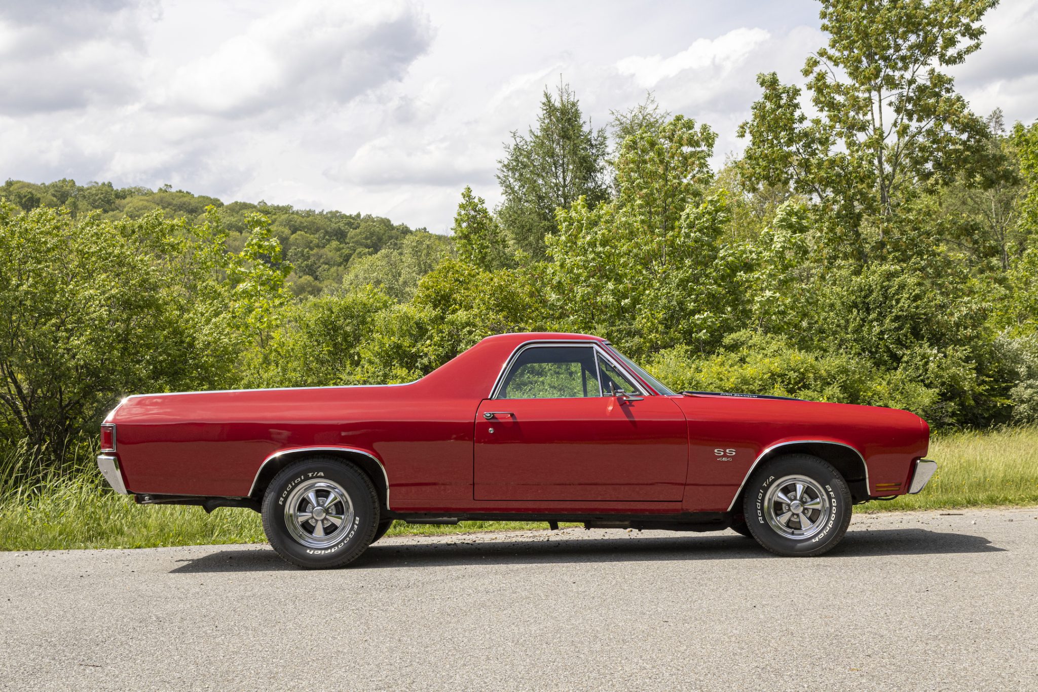 Chrome-finished 14″ Cragar wheels were mounted with BFGoodrich Radial T/A white-letter tires in November 2021. A receiver hitch is located at the rear. Prior service included replacing one of the rear brake hoses.