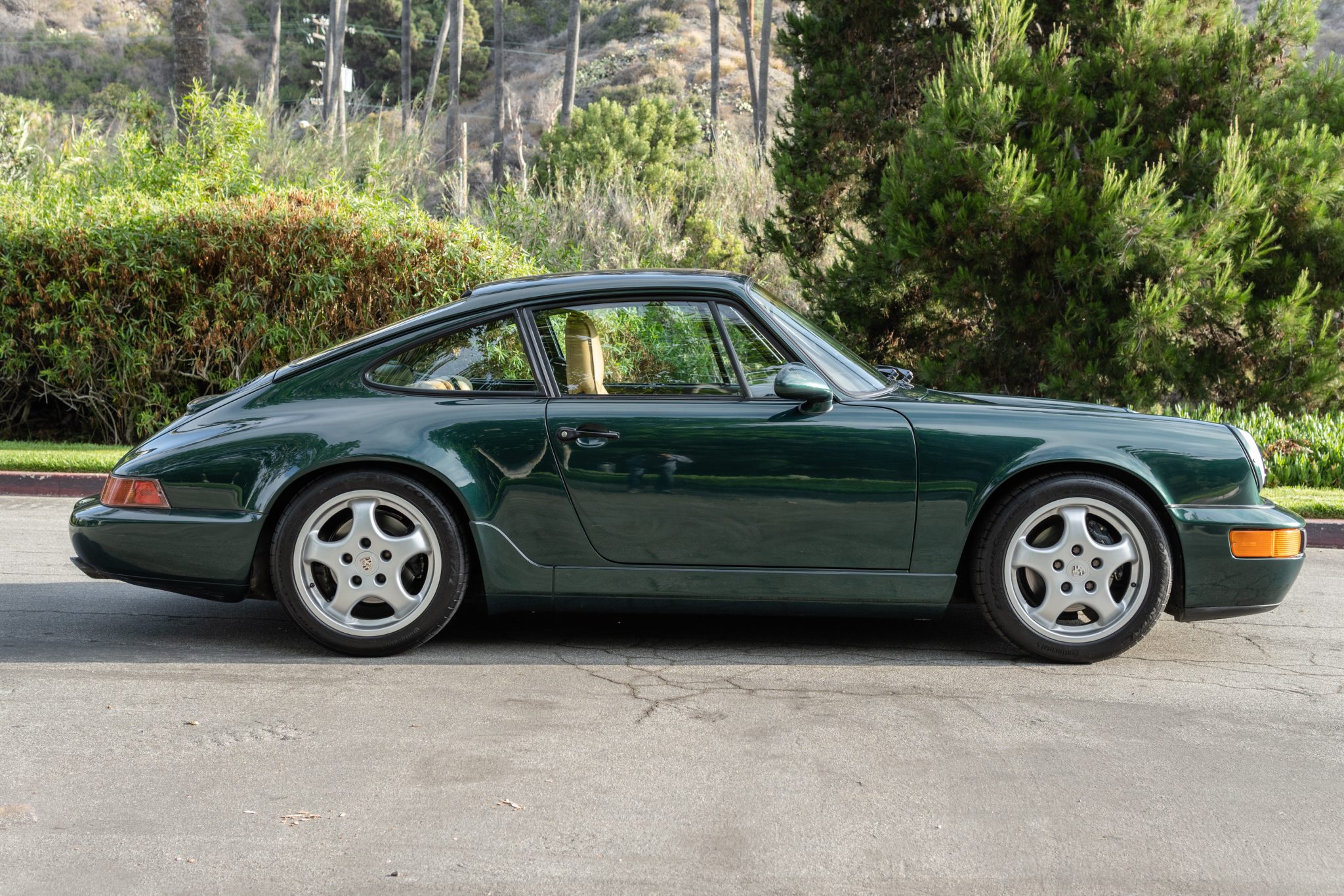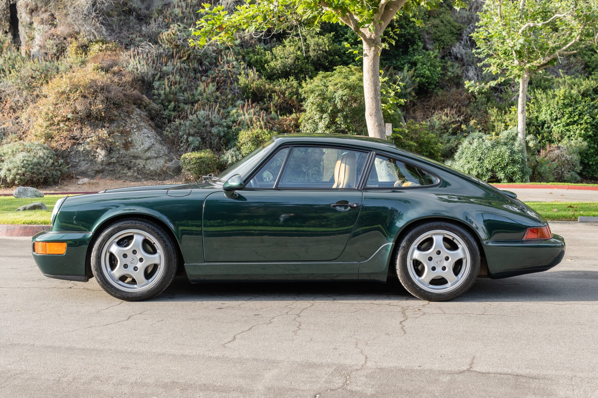 Silver-finished 17″ Cup wheels are wrapped in 205/50 front and 255/40 rear Continental ExtremeContact Sport tires showing 2021 date codes. Braking is handled by four-wheel ventilated discs with an anti-lock system. Bilstein shocks are said to have been installed at the original purchase in 1990.