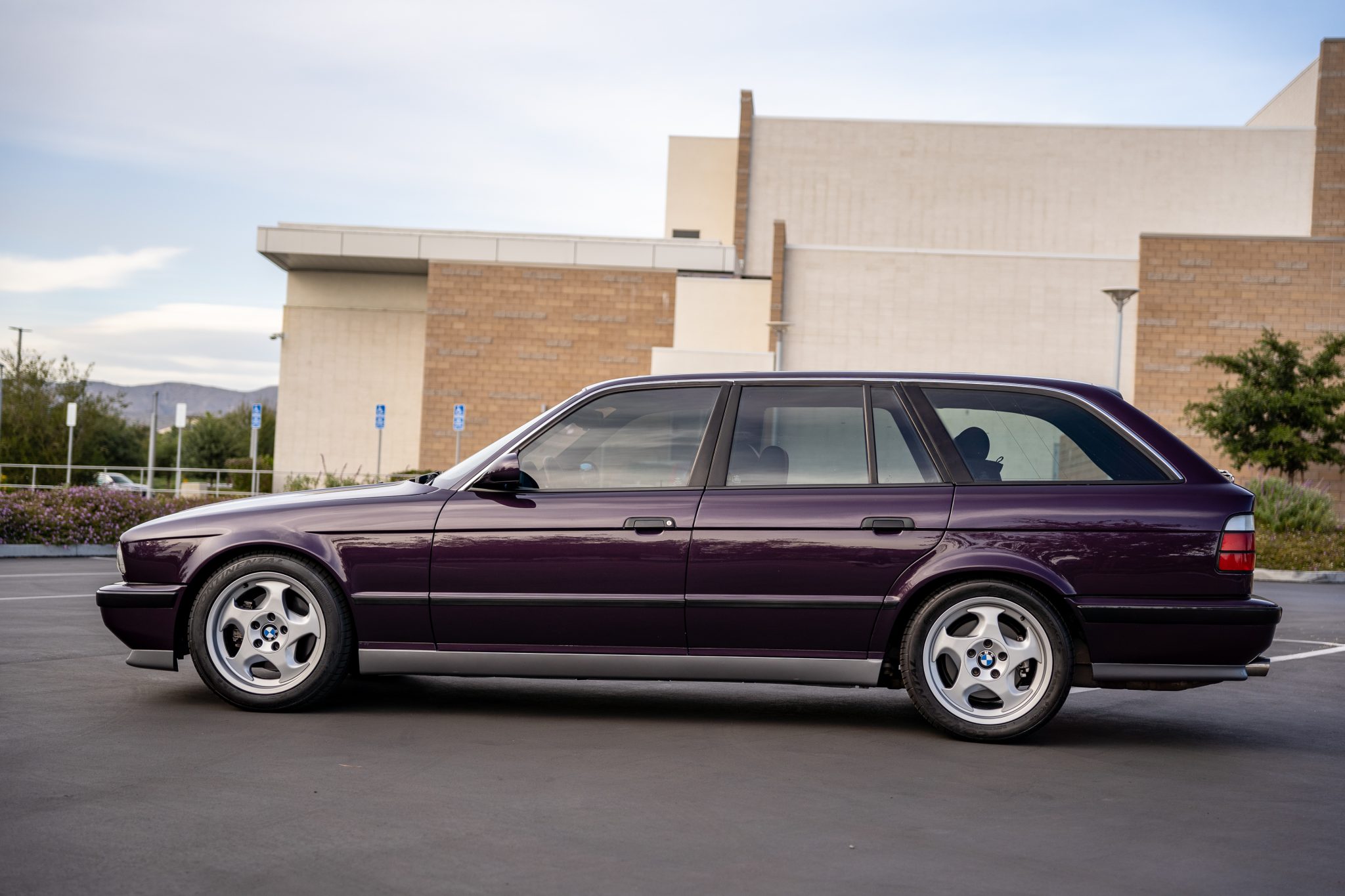 The 17″ M System II wheels feature “throwing star” covers and are mounted with 235/45 front and 255/40 rear Continental ExtremeContact DWS tires showing 2018 date codes. The car is equipped with a self-leveling rear suspension as well as an adaptive M suspension that has been fitted with lowering springs. Braking is handled by four-wheel ventilated discs with ABS. The brake fluid was changed in March 2022.
