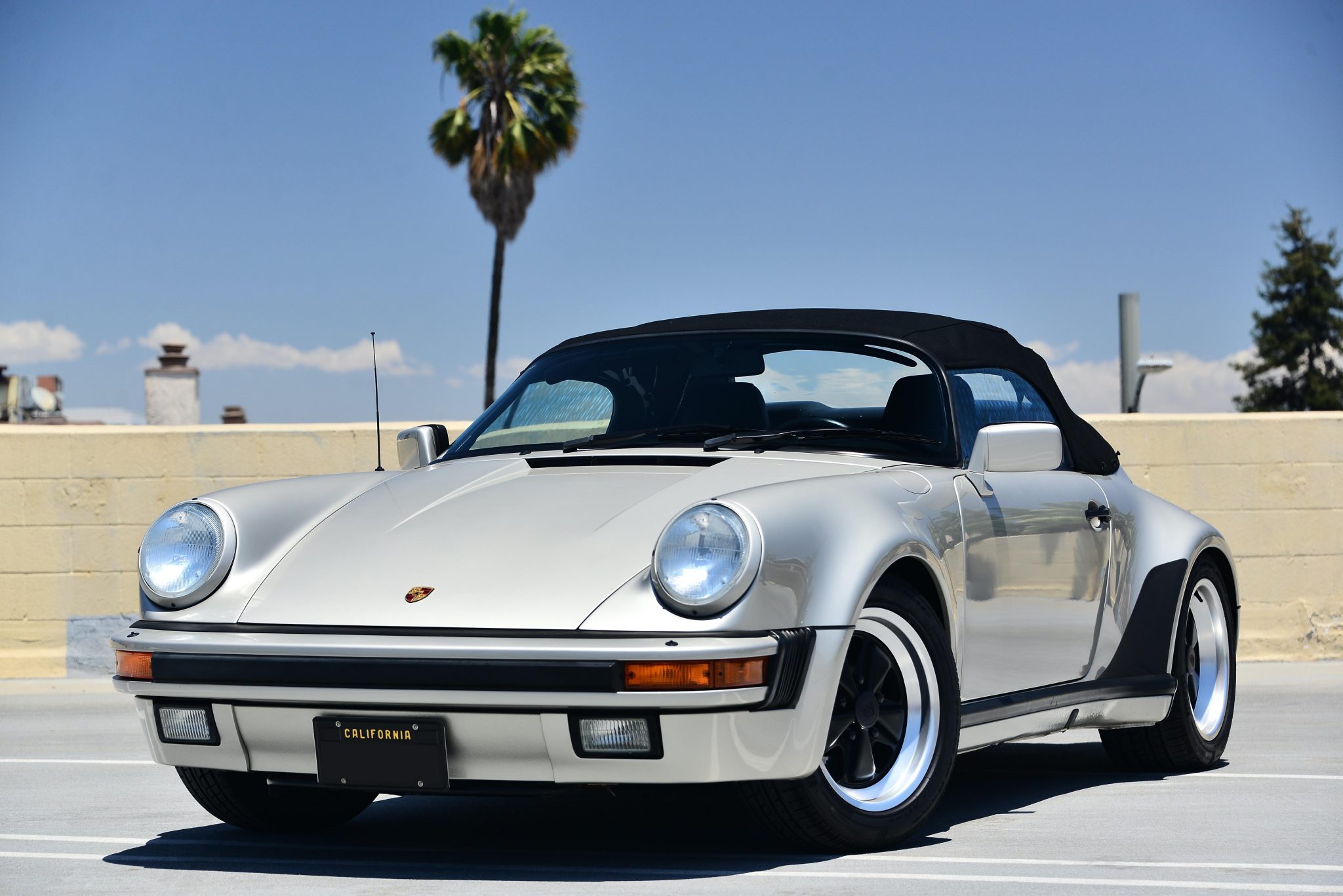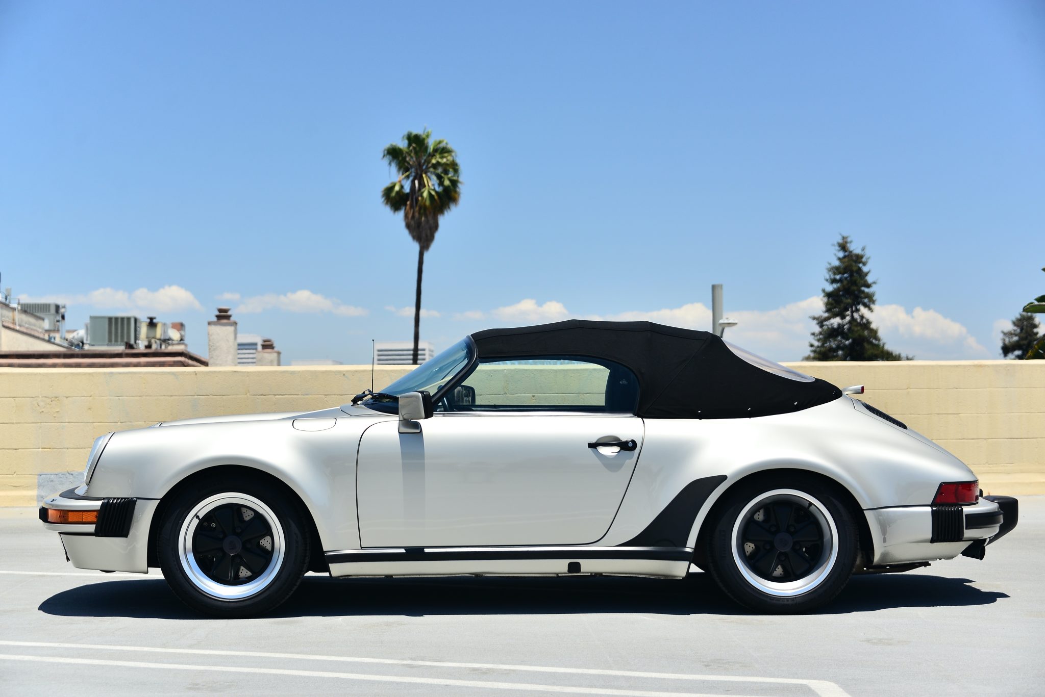 Staggered-width 16″ Fuchs wheels feature black centers and are mounted with Pirelli P Zero Rosso tires measuring 205/55 up front and 245/45 at the rear. Braking is handled by black Porsche-script calipers over cross-drilled rotors at all four corners.