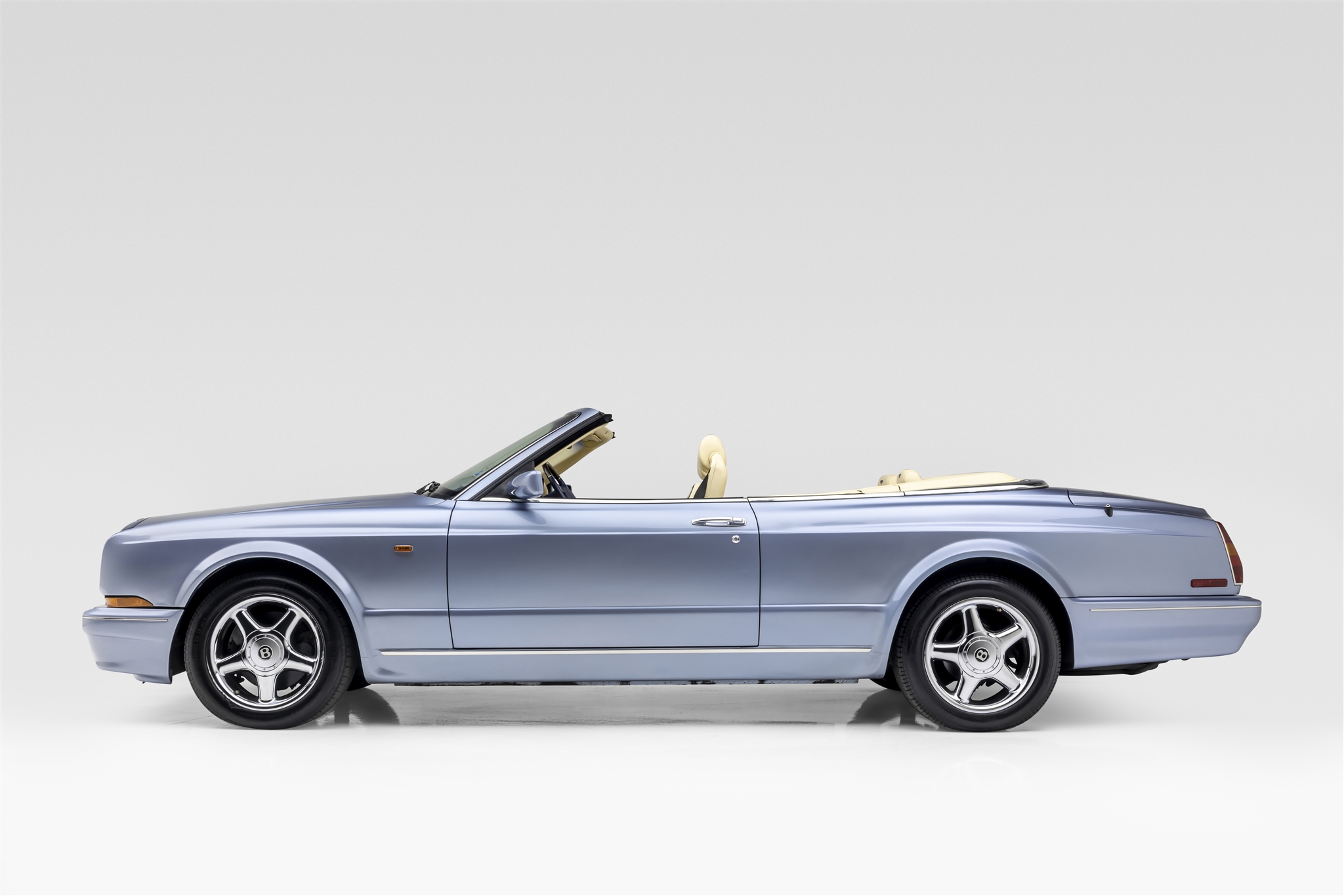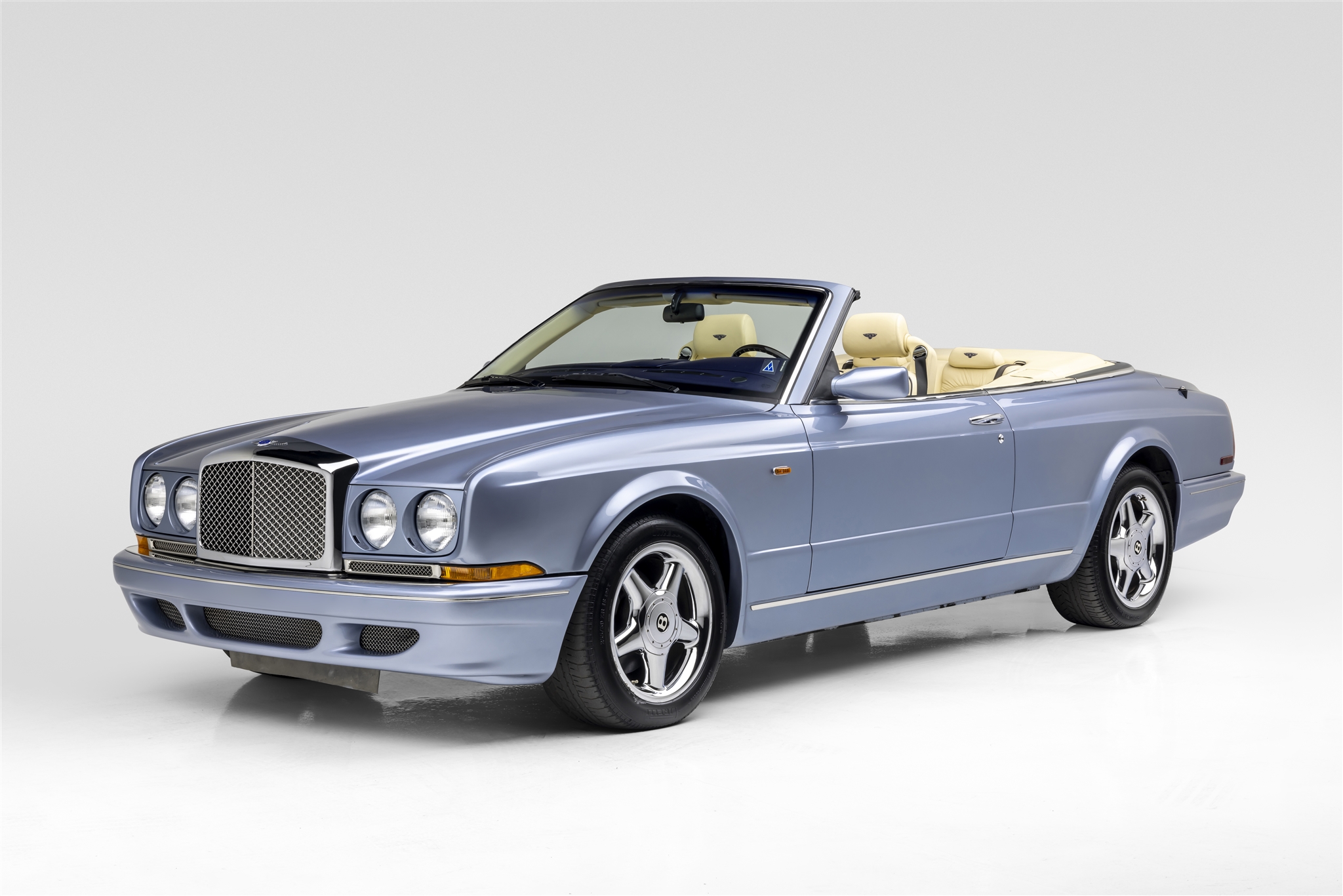 Chrome-finished 18″ five-spoke wheels are mounted with 255/50 Pirelli P Zero Asimmetrico tires. Braking is handled by four-wheel discs, and the car is factory equipped with an electronically-controlled suspension system.