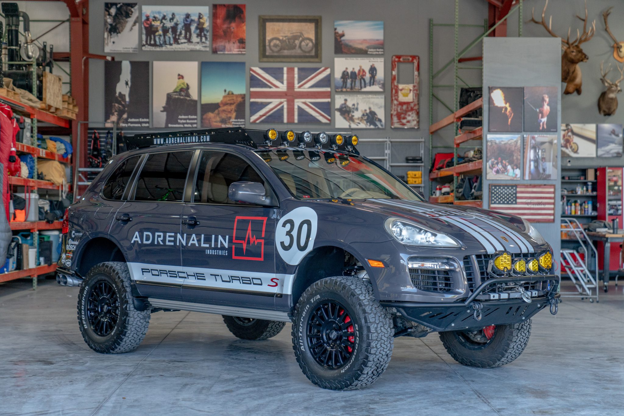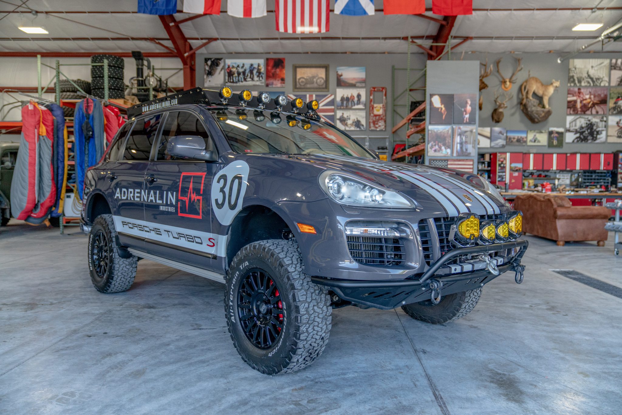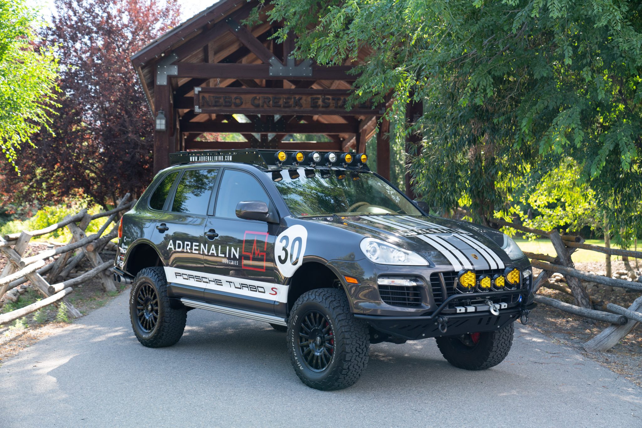OZ Racing Rally Raid 18″ wheels are wrapped in 285/65 BFGoodrich All-Terrain T/A tires. The truck is equipped with Porsche Stability Management, Porsche Traction Management, and fully independent air suspension with Porsche Active Suspension Management (PASM). Rotors and calipers reportedly sourced from a Cayenne Turbo were installed in order to accommodate 18″ wheels, and additional equipment is said to include a Eurowise 3″ suspension lift, a Eurowise 1″ subframe drop kit, and Eurowise control arms. The power steering fluid was changed in 2022, and the seller notes that the struts have been welded in place.