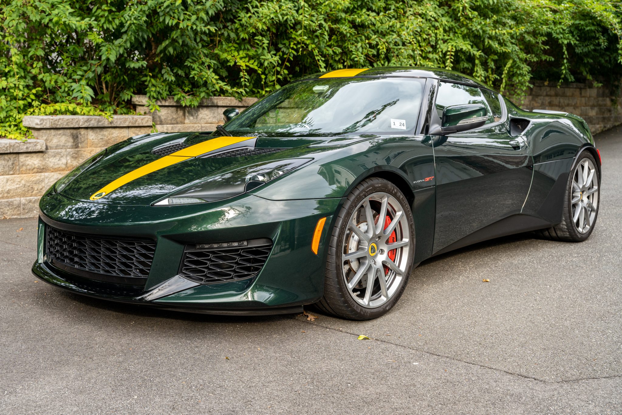 Forged alloy wheels measure 19″ in front and 20″ out back, and are mounted with 245/35 and 295/30 Michelin Pilot Sport Cup 2 tires. The car is equipped with driver-selectable ESP modes, and the brake system utilizes ventilated and cross-drilled rotors with four-piston AP Racing calipers at each corner. The brake fluid was flushed during second-annual service by Aston Martin Summit in April 2022.