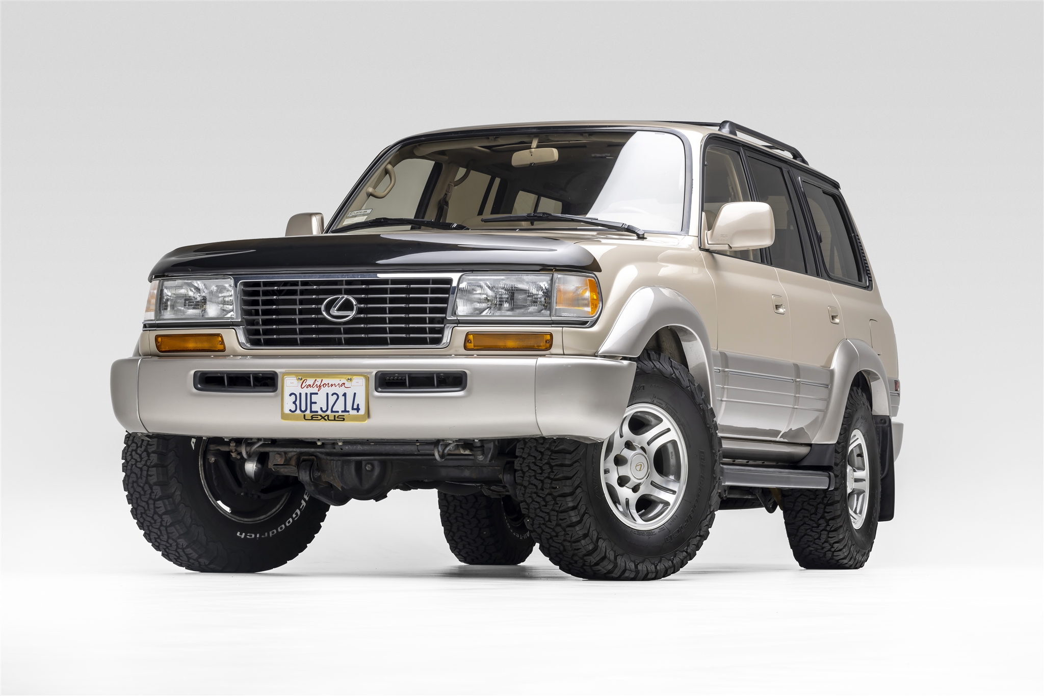 The five-spoke 16″ alloy wheels wear 285/75 BFGoodrich All-Terrain T/A KO2 Baja Champion tires, and a full-size spare is mounted to an under-chassis carrier. Braking is handled by ventilated discs at each corner.