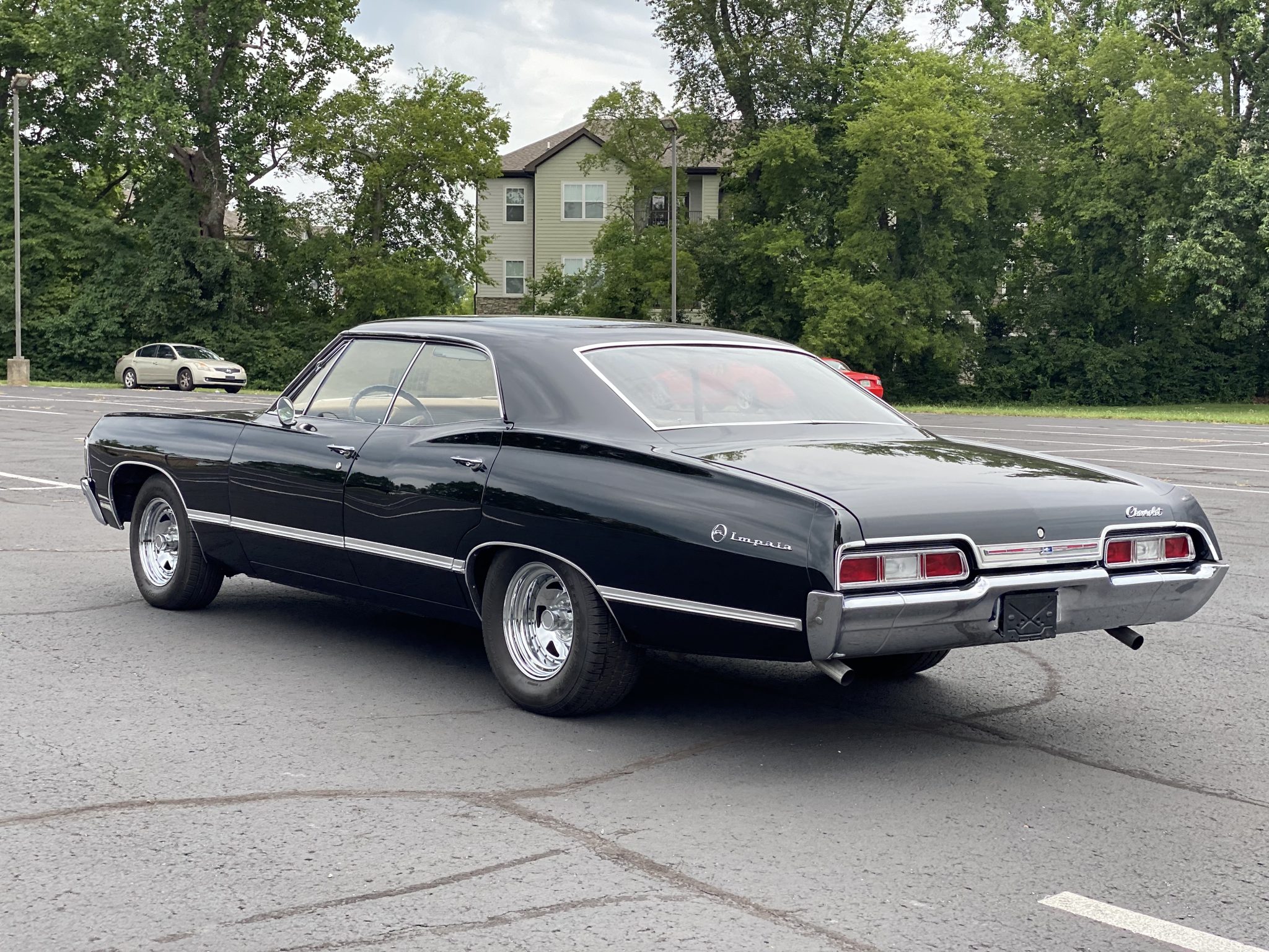 Chrome 15″ wheels are mounted with BFGoodrich Radial T/A tires measuring 215/70 in front and 275/60 in back. Braking is provided by four-wheel drums.