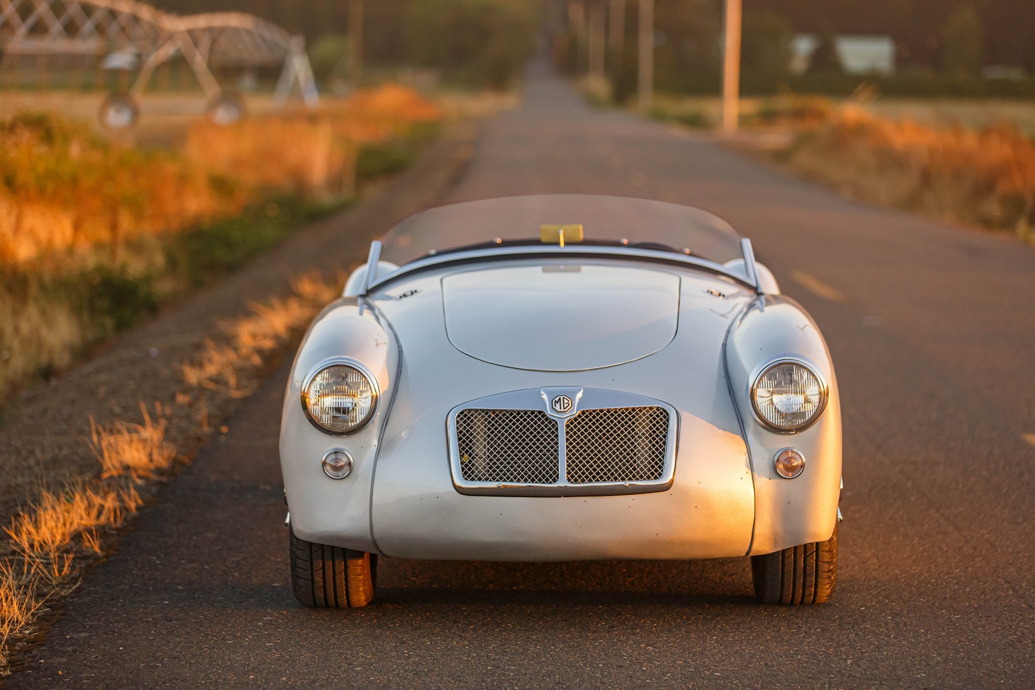 Chrome 16″ Dayton 72-spoke wire wheels wear two-eared knock-off spinners and are mounted with 205/55 Cooper Zeon RS3-G1 tires. The car is equipped with a Hoyle Racing MGB subframe, independent rear suspension, rack and pinion steering, adjustable coilovers, rose jointed anti-roll links, and Timken wheel bearings. Stopping power is provided by Hoyle disc brakes at all four corners with EBC brake pads.
