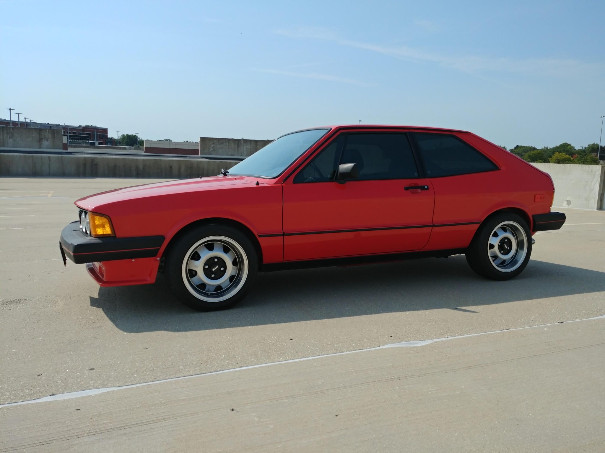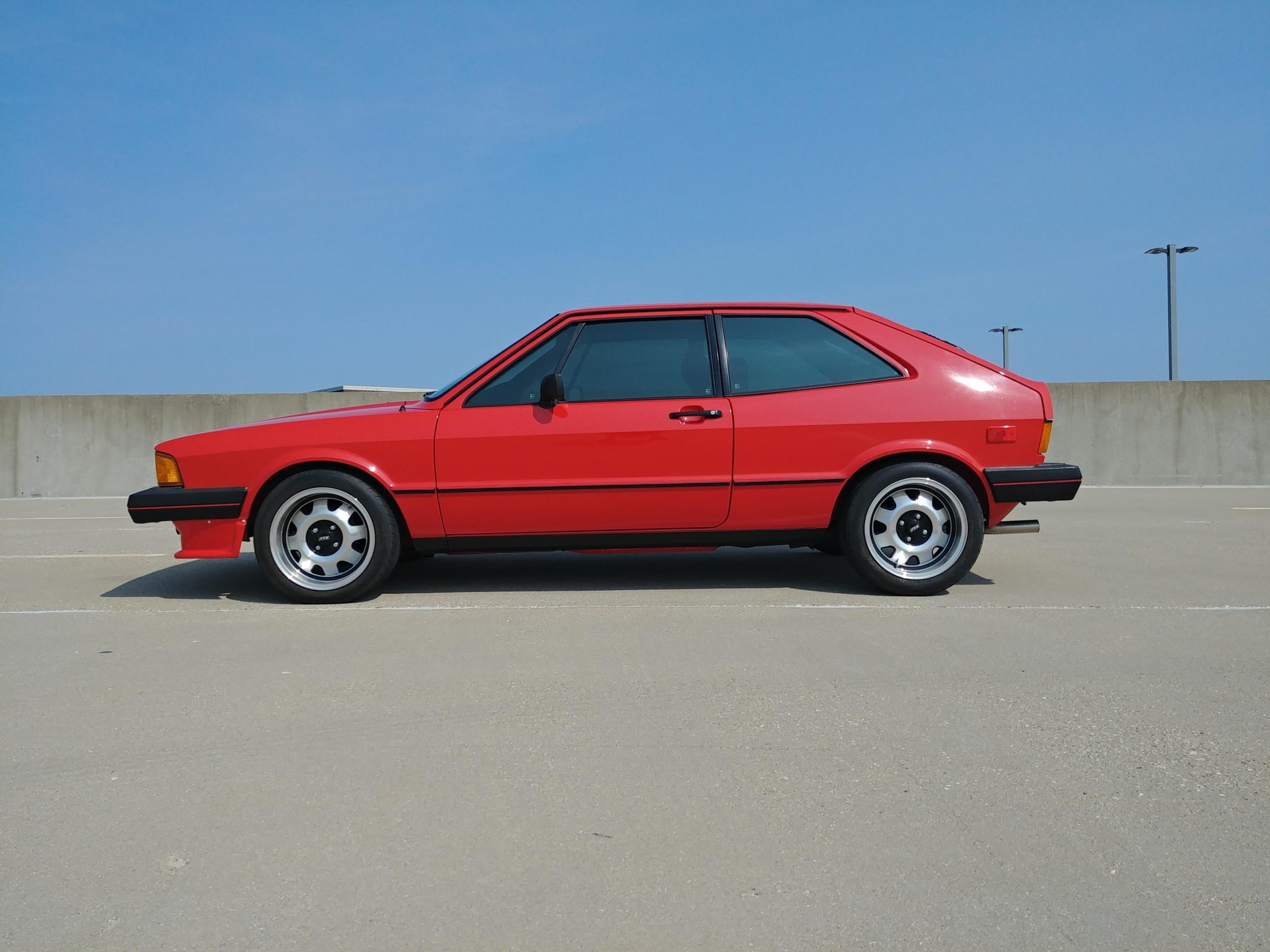 ATS Cup 15″ wheels with painted accents and polished lips are mounted with 195/50 Yokohama AV-1 60 tires. The suspension is lowered with Eurosport springs, and Bilstein shock absorbers are installed at each corner. Stopping power is provided by front disc and rear drum brakes.