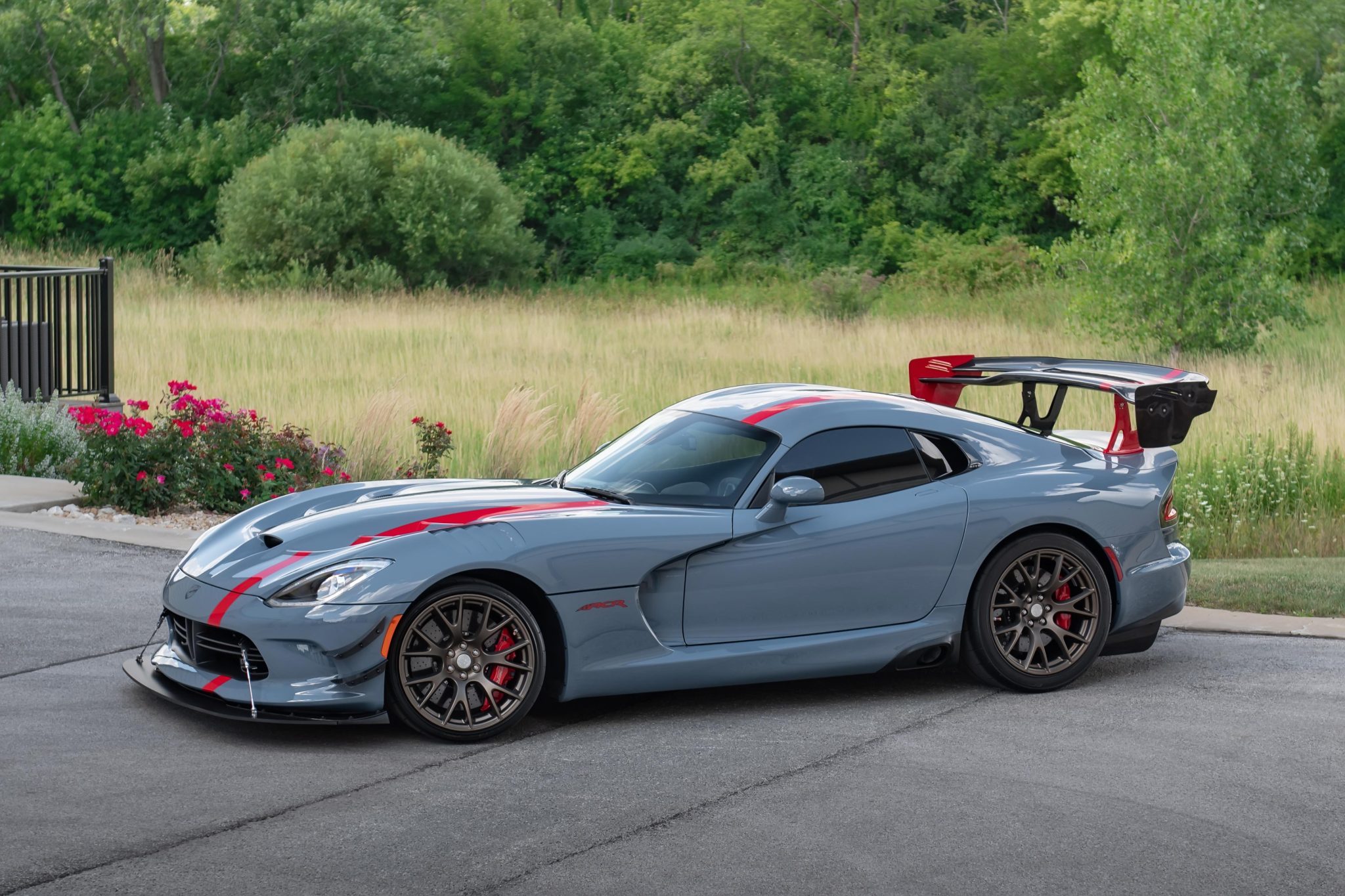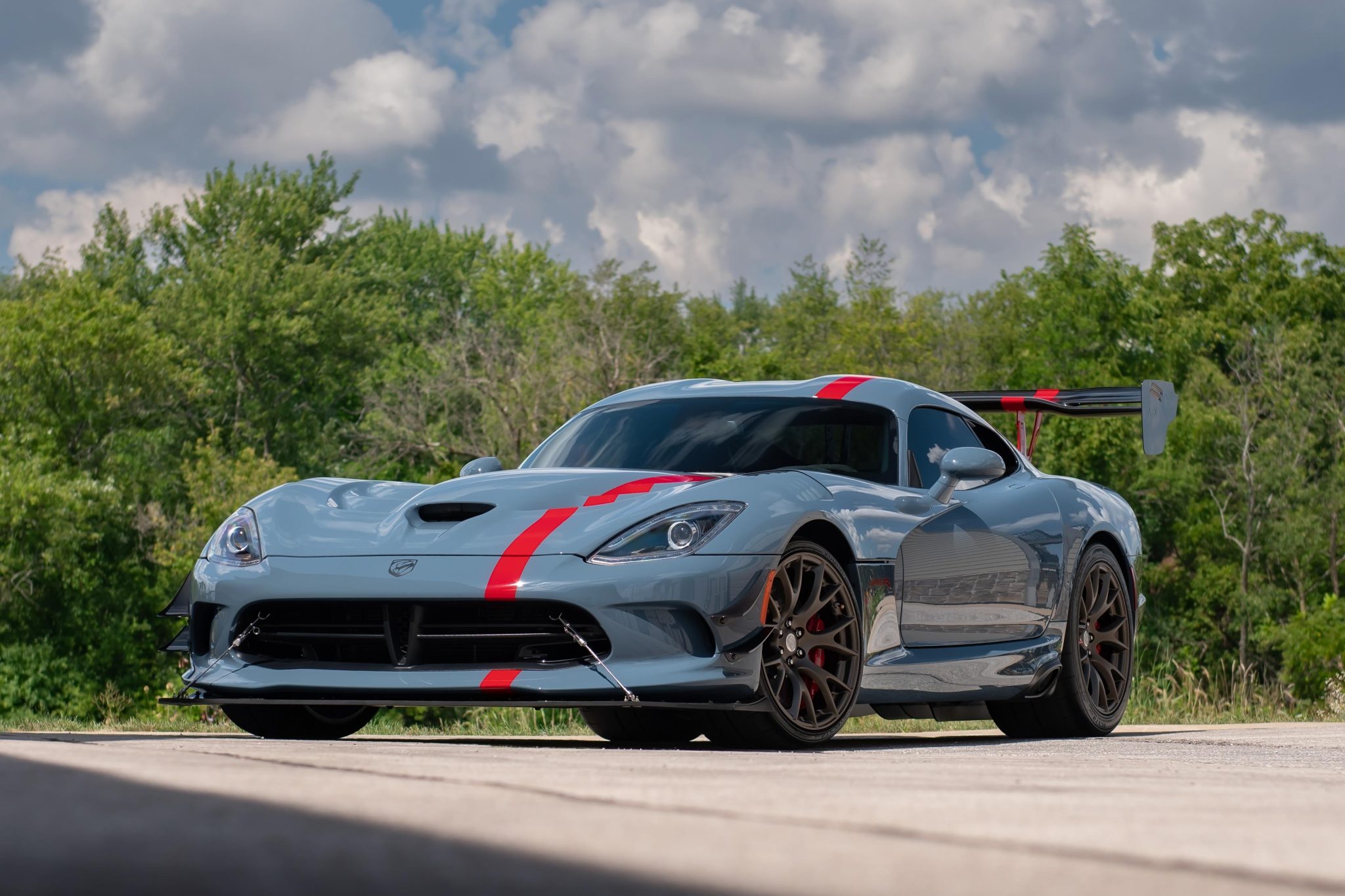 Staggered-width 19″ ACR Brass Monkey wheels are mounted with Kumho Ecsta tires measuring 295/25 up front and 355/30 out back. Braking is provided by red Viper-branded Brembo calipers paired with carbon-ceramic rotors, and the car is equipped with a 10-way-adjustable suspension, electronic launch control, and five-mode electronic stability control.