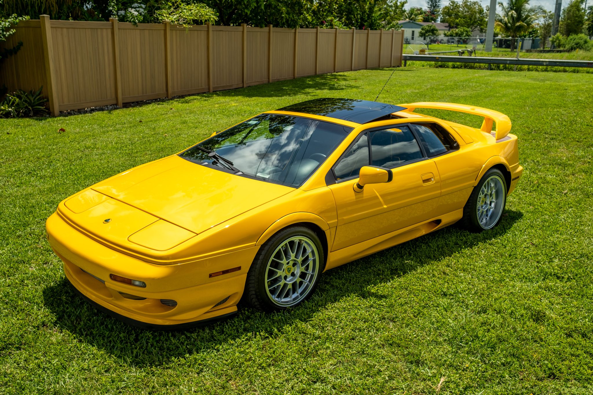 Staggered-width 17″ and 18″ alloy wheels are mounted with mixed Sumitomo tires. Stopping power is provided by ventilated cross-drilled rotors at all four corners, with Lotus-branded AP Racing calipers in the front. The brake fluid was changed in December 2021.