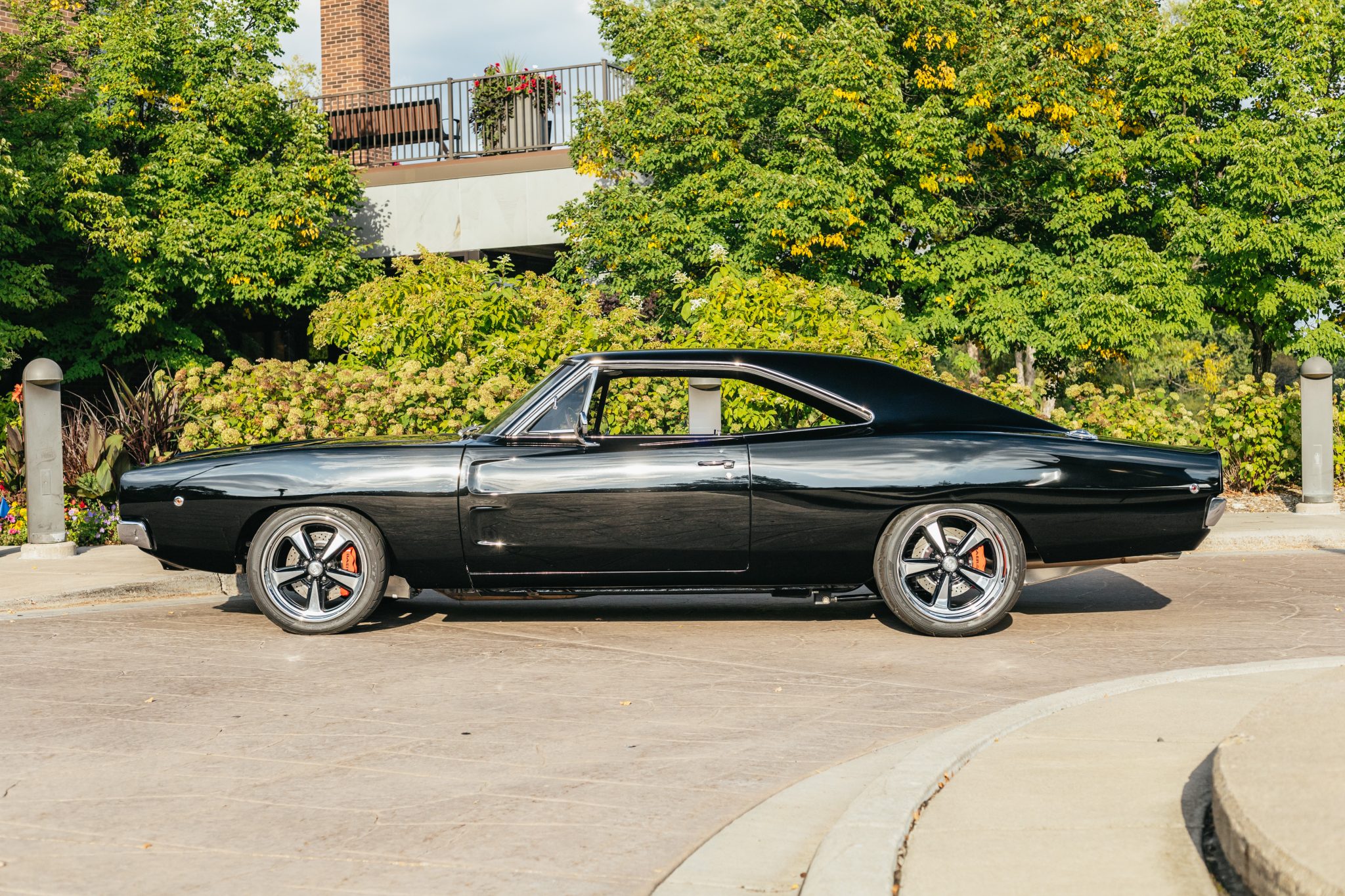US Mags wheels measure 18″ in diameter up front and 19″ out back, and they are mounted with 245/40 and 345/30 Nitto tires, respectively. Baer disc brakes are fitted at all four corners and feature red six-piston calipers and 14″ slotted and drilled rotors. Suspension modifications include a K-member, Viking Performance adjustable coilovers, and a four-link rear setup sourced from Control Freak Suspensions of Sanford, Florida.