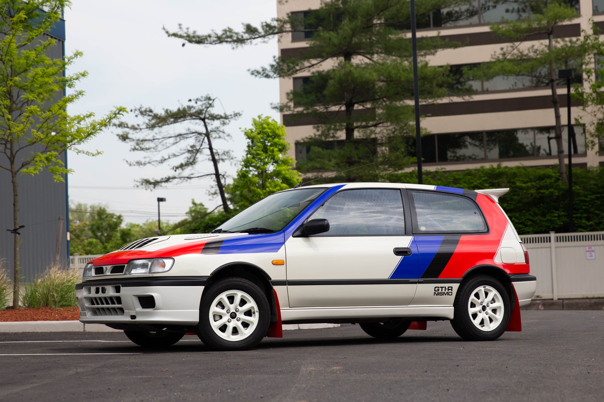 The white-painted 14″ NISMO wheels are mounted with Yokohama Avid Touring tires that were fitted in 2022 after the car was photographed. The tires can be seen up close in the gallery. NISMO-modified GTI-Rs featured revised suspension components as well as reinforced strut towers. Stopping power is provided by discs at all four corners.