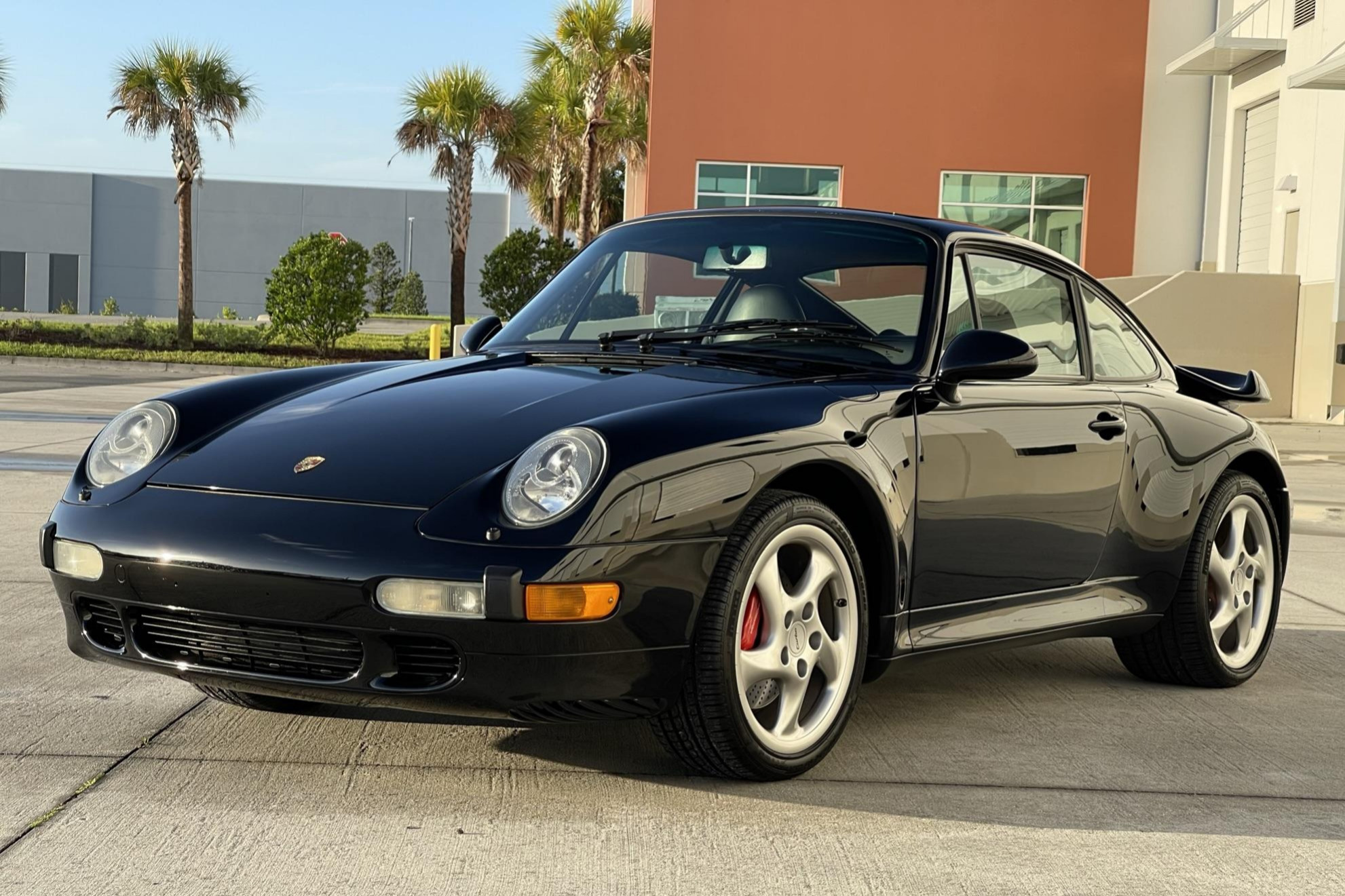 The 18″ Turbo Twist wheels are mounted with Pirelli P Zero tires showing 2018 date codes and measuring 225/40 up front and 285/30 at the rear. The car features an Automatic Brake Differential (ABD), and the 993 was the first 911 to feature multi-link rear suspension. Braking is provided by red Porsche-branded four-piston calipers over cross-drilled rotors at all four corners. Replacement front sway bar end links were fitted in preparation for the sale.