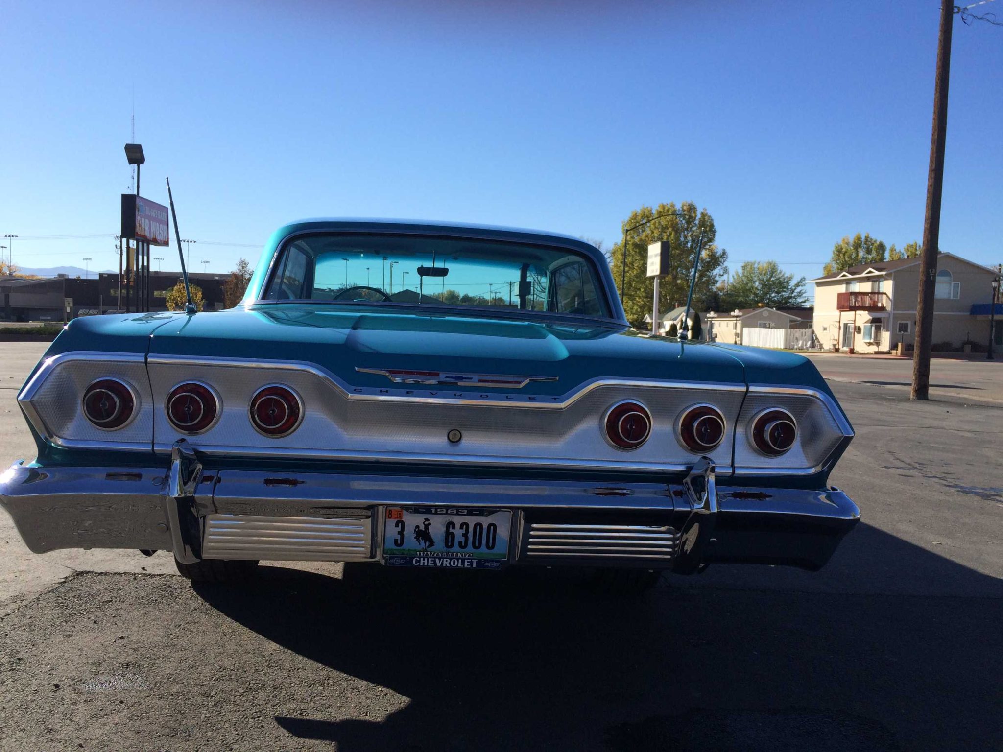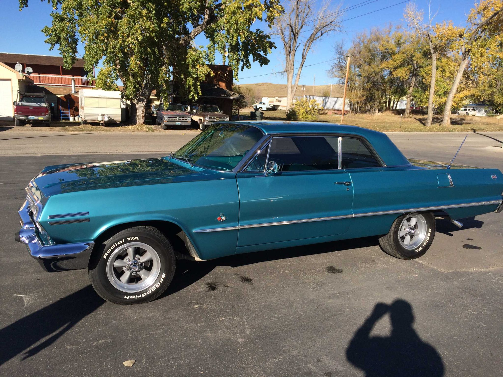 The 15″ American Racing wheels are mounted with 215/70 BFGoodrich Radial T/A tires. The car is equipped with power steering and air shock absorbers, and braking is handled by power-assisted front discs and rear drums.