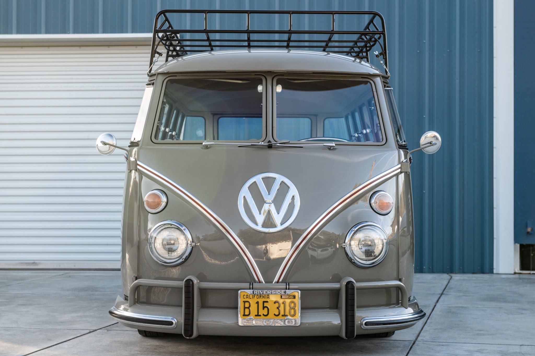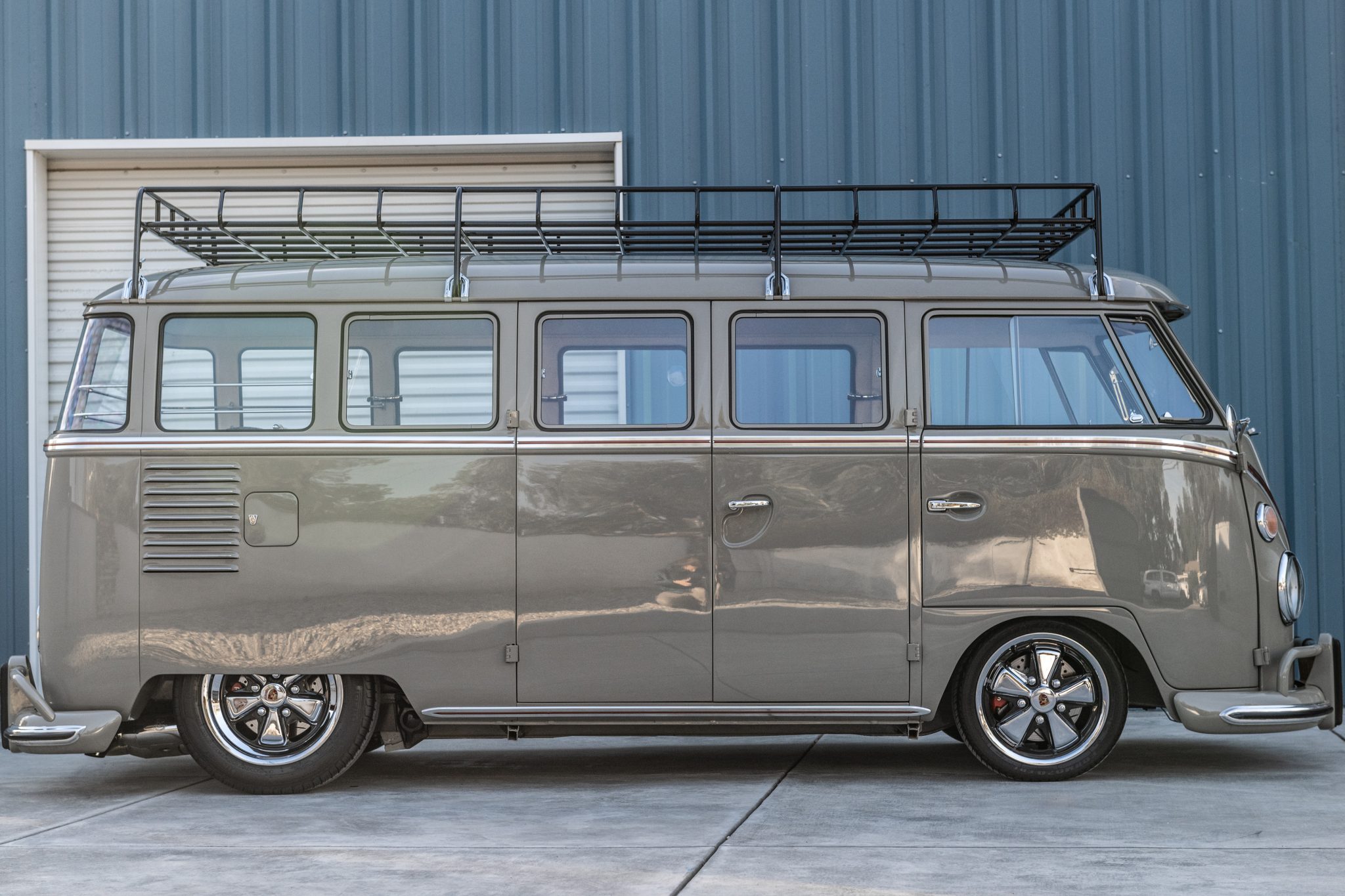 Chrome 15″ and 16″ Fuchs wheels are wrapped in 165/50 Federal Formoza front and 205/55 Pirelli rear tires. The van is also equipped with a 4″ narrowed front ball joint beam, adjustable Spax shocks, and four-wheel Wilwood disc brakes with red calipers.