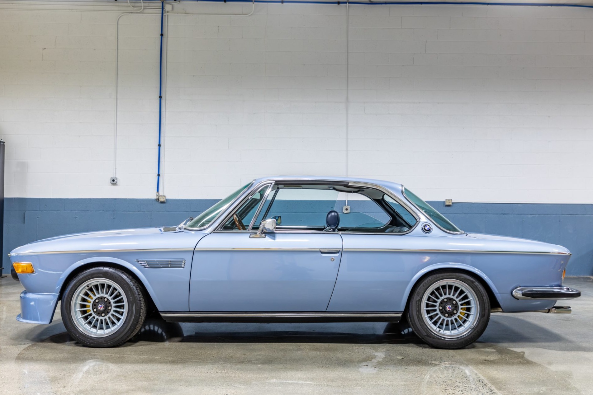 Multi-spoke 16″ Alpina-style wheels are mounted with BFGoodrich G-Force Super Sport tires. The car features four-wheel disc brakes, updated sway bars, lowering springs, and Bilstein shocks. The brake calipers have been painted yellow and overspray is visible on the backing plates.