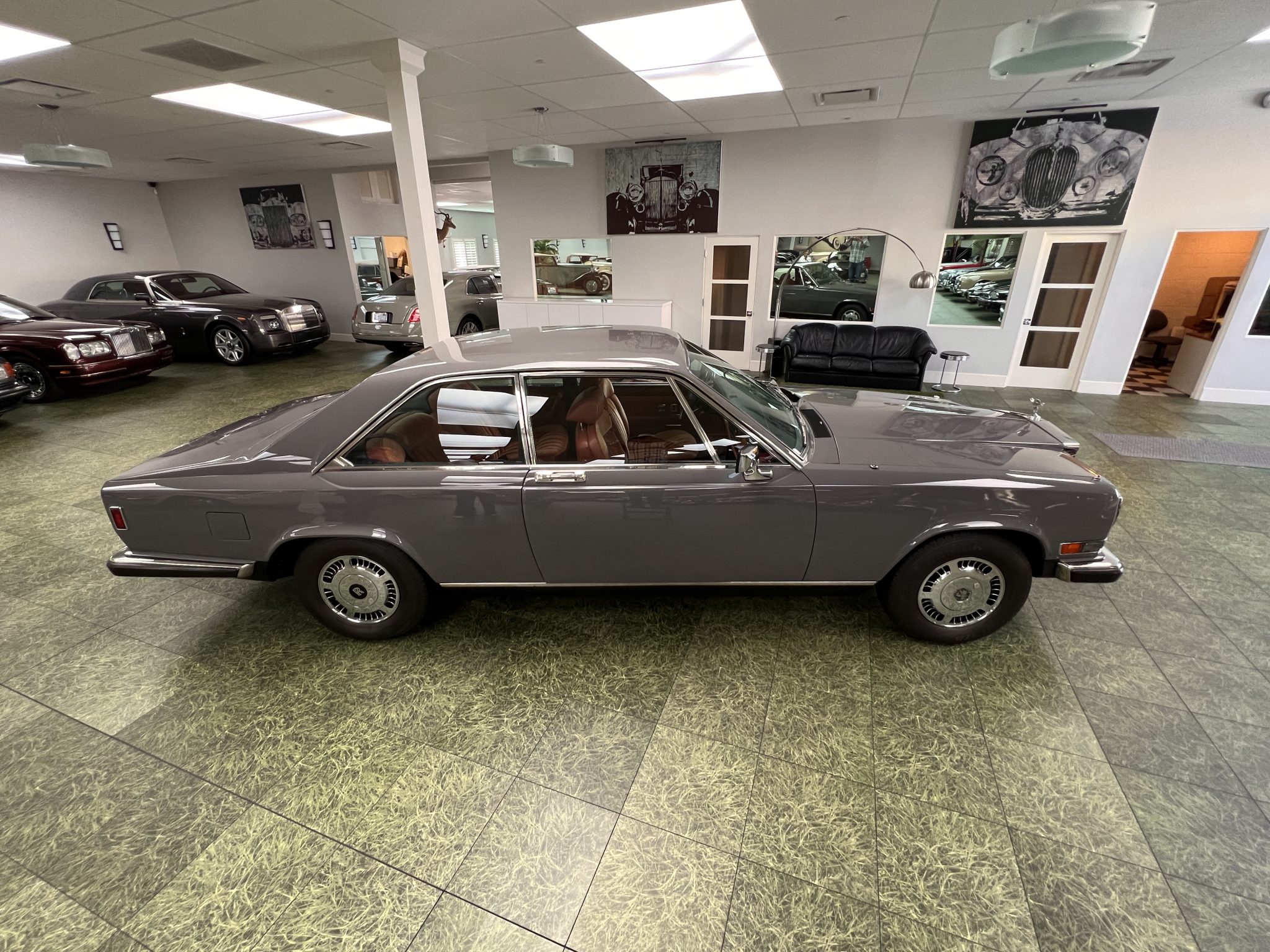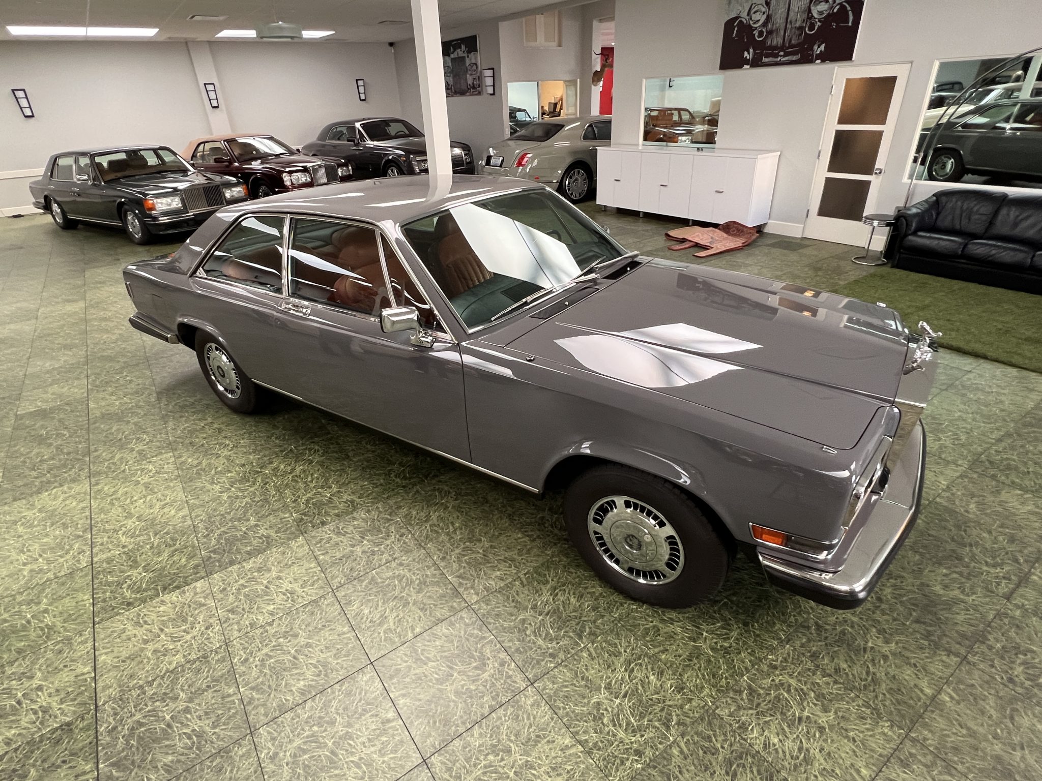 Steel 15″ wheels wear chrome-finished covers and are mounted with BFGoodrich Radial T/A tires. The car is equipped with hydraulic rear ride-height adjustment and power-assisted rack-and-pinion steering. The right-front center cap is missing.