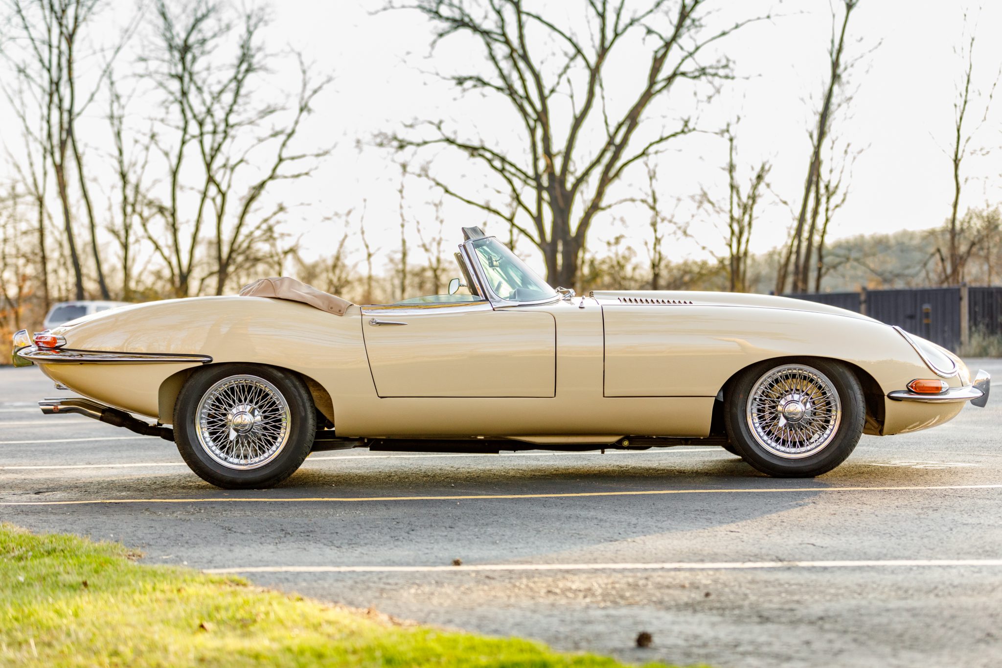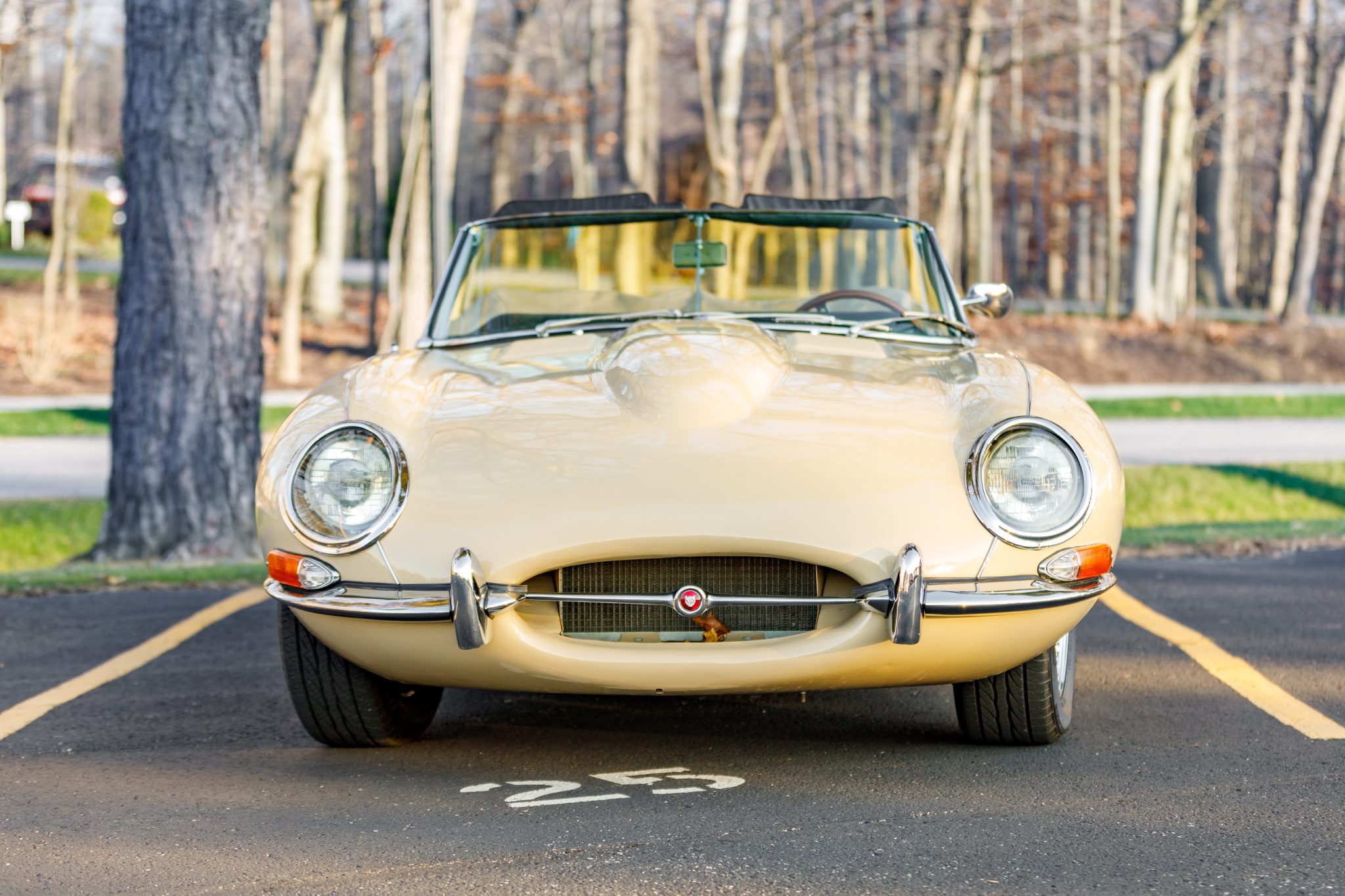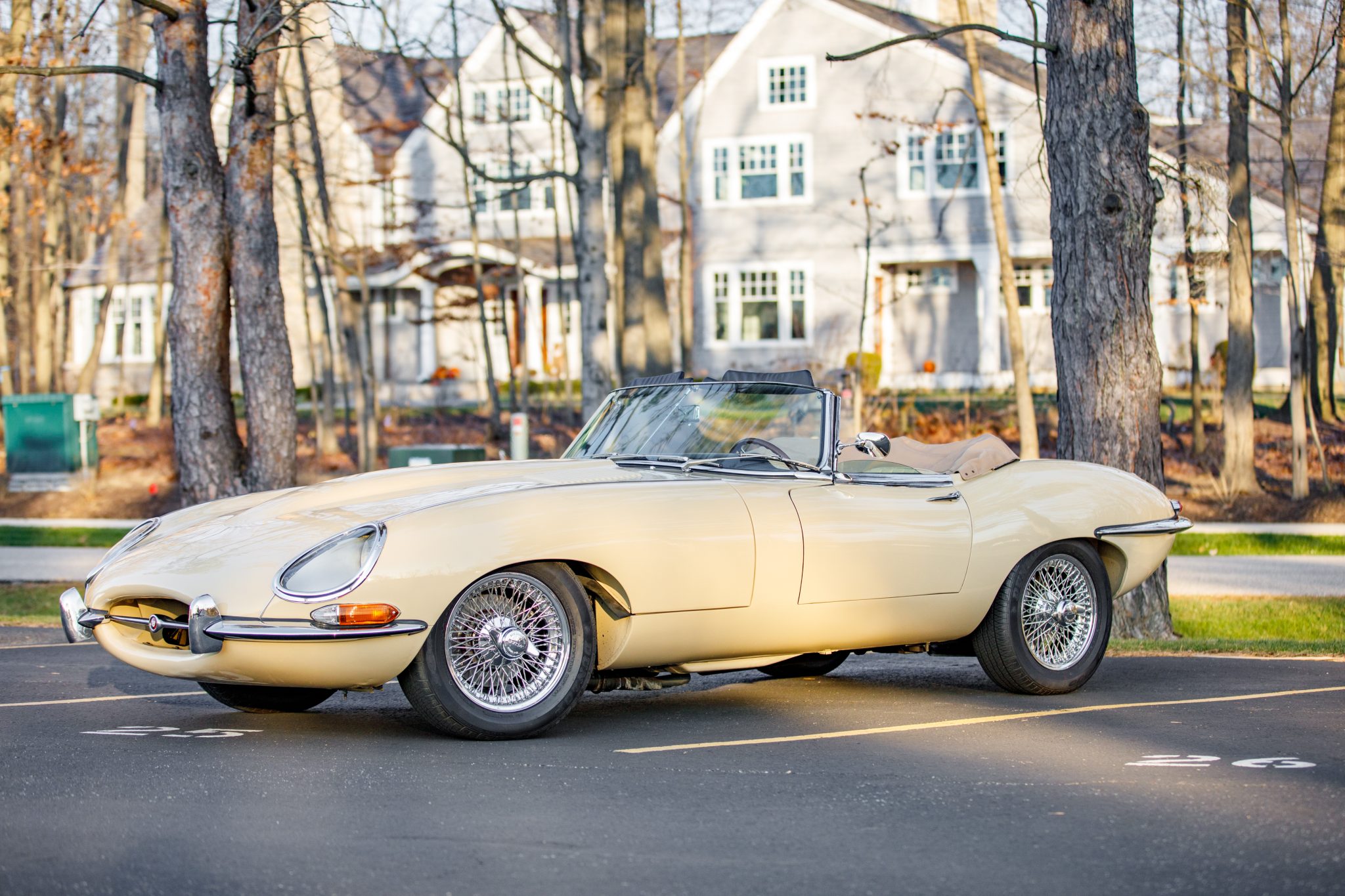 Chrome 15” knock-off wire wheels are mounted with 195/65 Dunlop SP Sport 5000 tires that show 2003 date codes. The independent suspension has been fitted with Koni front shocks, rear coilovers, and an adjustable torsion bar reaction plate. The four-wheel disc brake system has been upgraded with Wilwood front components as well as rear calipers that were sourced from a Series-2 XKE. A set of spare Dunlop SP Sport 5000 tires are included in the sale.