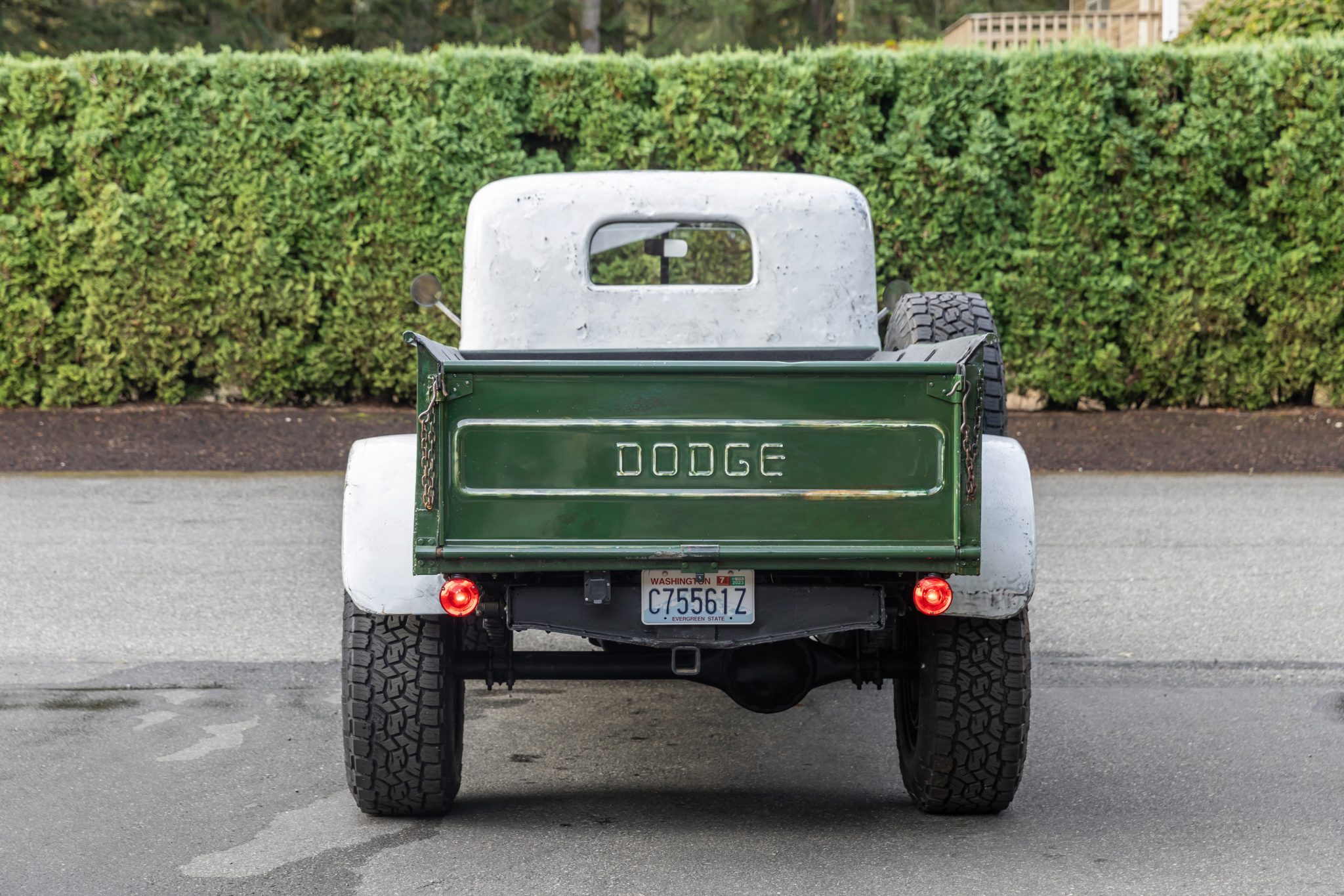 Black 20″ two-piece custom wheels are mounted with 37×12.5″ Toyo Open Country A/T III tires bearing 2021 manufacturing date codes. A matching spare is secured to the right bedside. The truck features power steering, and braking is handled by power-assisted front discs and factory-style rear drums. Work under current ownership is said to have consisted of installing a master cylinder, vacuum brake booster, shock absorbers, and front brake rotors and pads.