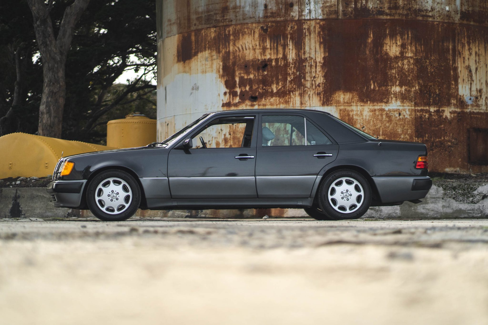 The 16″ eight-hole alloy wheels are mounted with Michelin Premier A/S tires. The car is equipped with Automatic Slip Control (ASR). Braking is handled by four-wheel ventilated discs. The steering gearbox was overhauled recently, and the lower ball joints were replaced in January 2022.