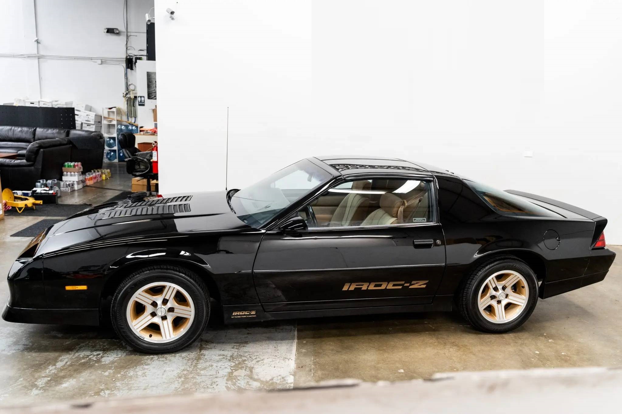 Gold-accented 16″ five-spoke alloy wheels are wrapped in 245/50 Yokohama AVS dB decibel tires. The IROC-Z package added a sport-tuned suspension, larger sway bars, a lowered ride height, and stiffer Delco-Bilstein shocks. Braking is handled by four-wheel discs.