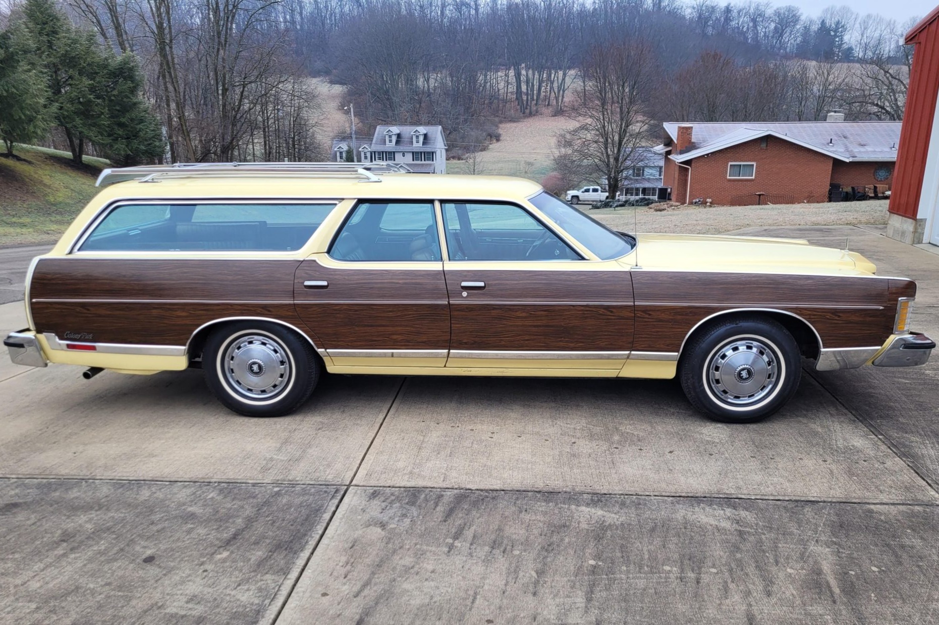Steel 15″ wheels with bright full covers are mounted with older 235/75 Michelin XW4 narrow-whitewall tires. Braking is handled by power-assisted front discs and rear drums.