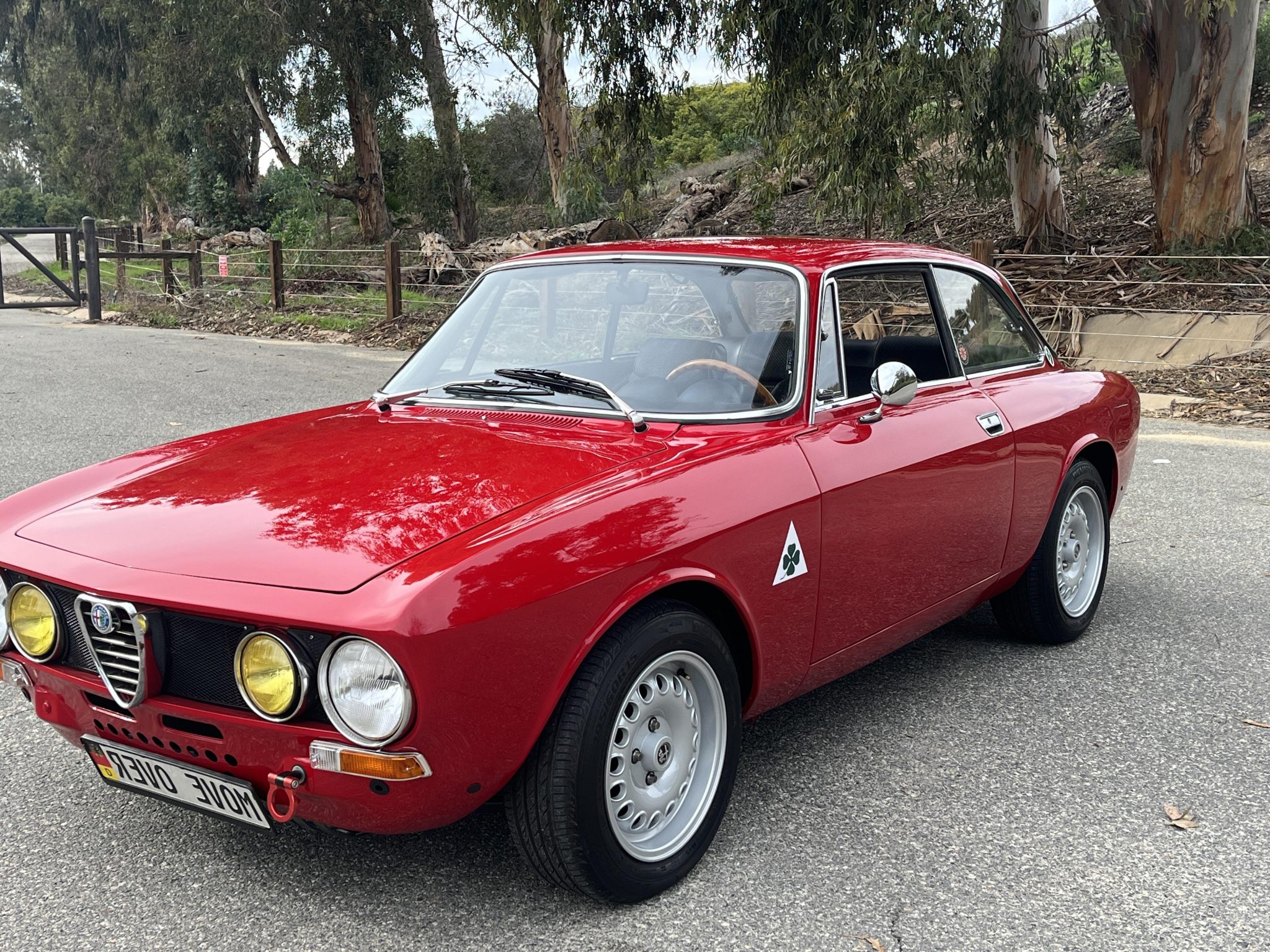 Silver-finished 15″ Alfaholics GTA Veloce-style wheels are mounted with 195/60 Delinte DH2 tires. Stopping power is provided by four-wheel disc brakes. Bilstein shocks are installed up front, and the upper control arms were replaced in June 2020.