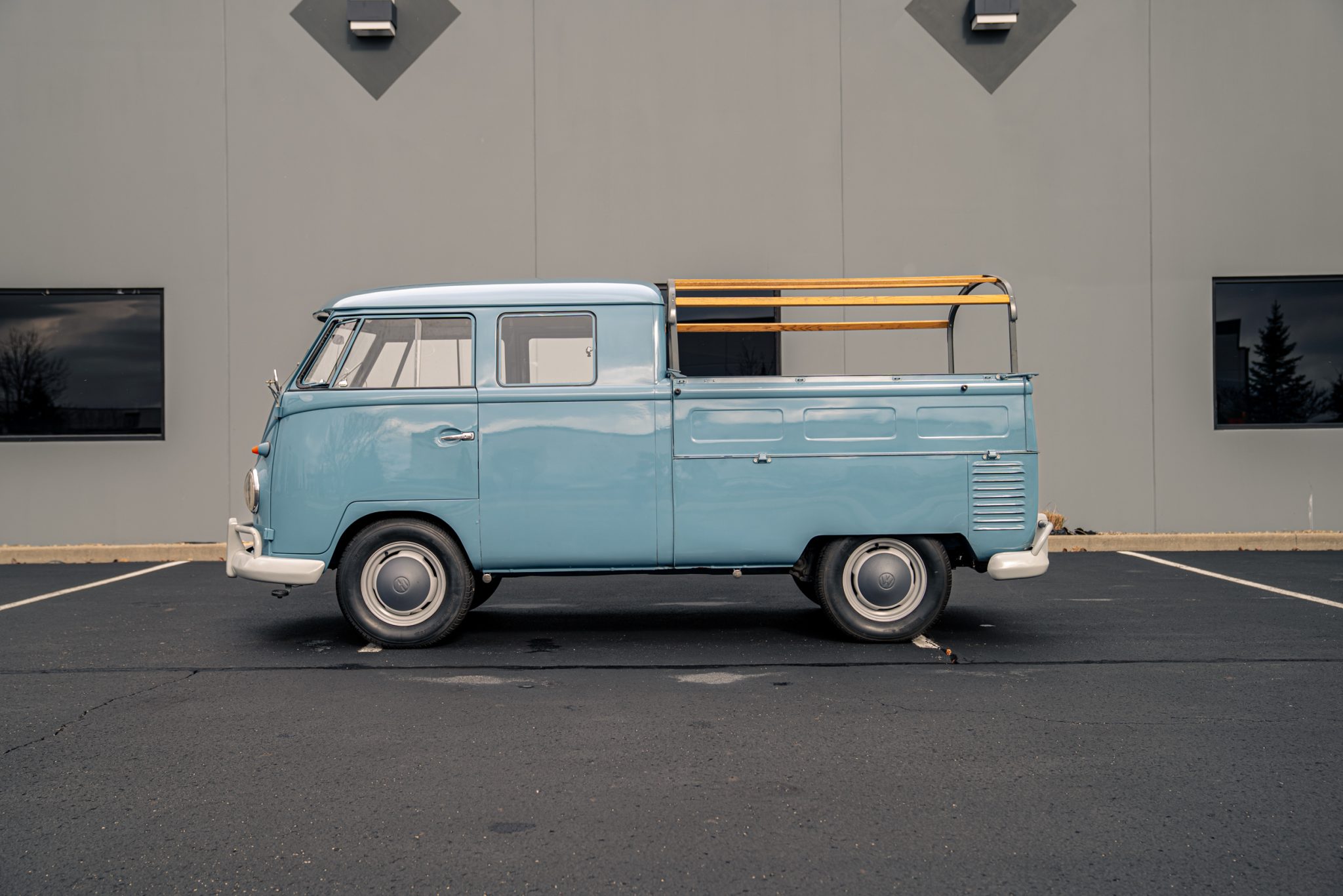 Gray-finished 15″ wheels wear VW-stamped hubcaps and are mounted with 205/75 Triumph tires. Braking is handled by four-wheel drums.