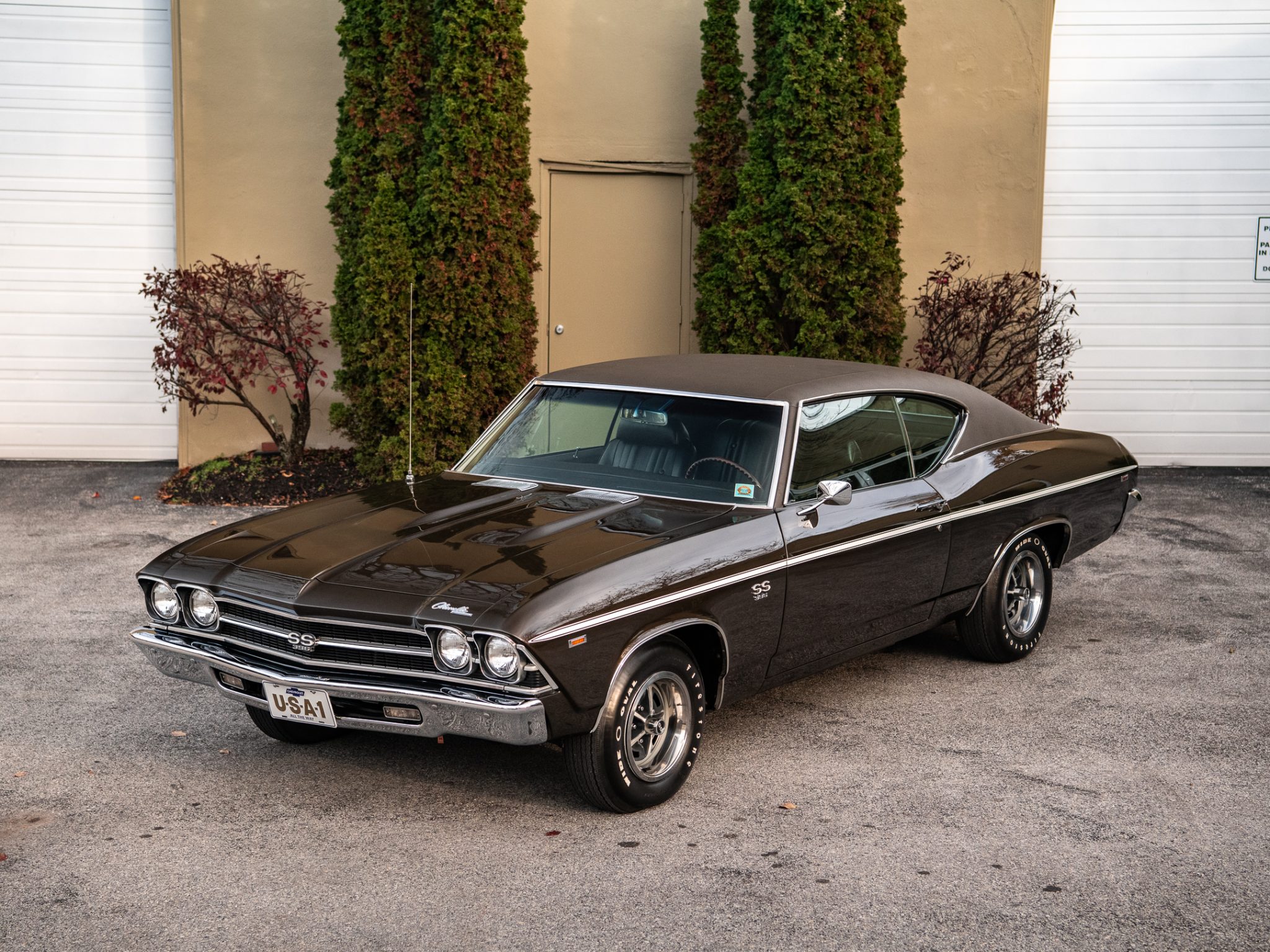 The 14″ Super Sport wheels wear SS center caps and are mounted with FR70-14 Firestone Wide Oval white-letter tires. The car is equipped with power steering and braking is handled by power-assisted front discs and rear drums.