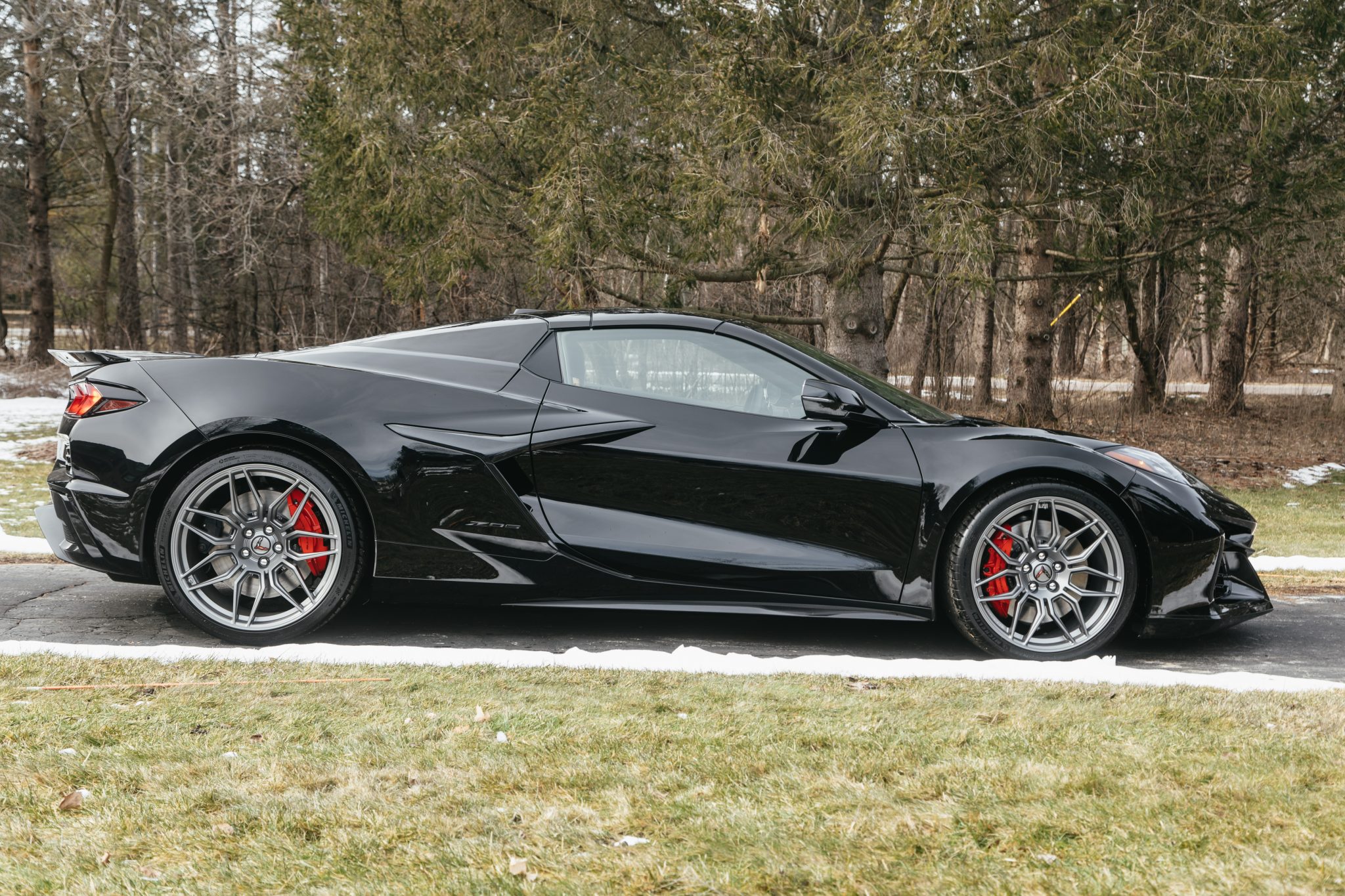 Forged aluminum 20″ and 21″ wheels are wrapped in 275/30 front and 345/25 rear Michelin Pilot Sport 4S tires. The car is equipped with a drive-mode selector as well as Magnetic Selective Ride Control. Stopping power is provided by Z06 performance brakes with Corvette-branded red-finished calipers.