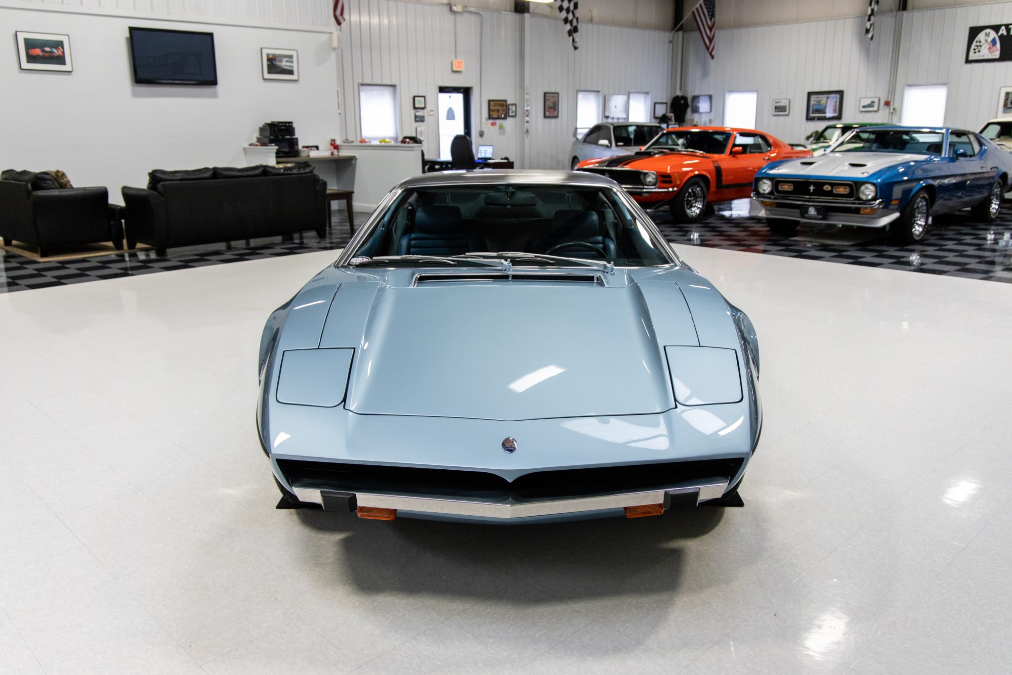 The 15″ Campagnolo cast alloy wheels wear polished hubcaps and are mounted with Michelin XWX radial tires that were installed by the selling dealer in 2022. A matching spare wheel with a Michelin radial tire is mounted under a cover aft of the engine. The Bora rides on a 102.4″ wheelbase and features a fully independent suspension with double wishbones, coil springs, and telescopic shock absorbers as well as front and rear torsion bars. The braking system is based on a high-pressure LHM hydraulic system from then-parent company Citröen and features vented discs at all four corners. A replacement steering damper and tie rod end joints were also installed by the selling dealer.