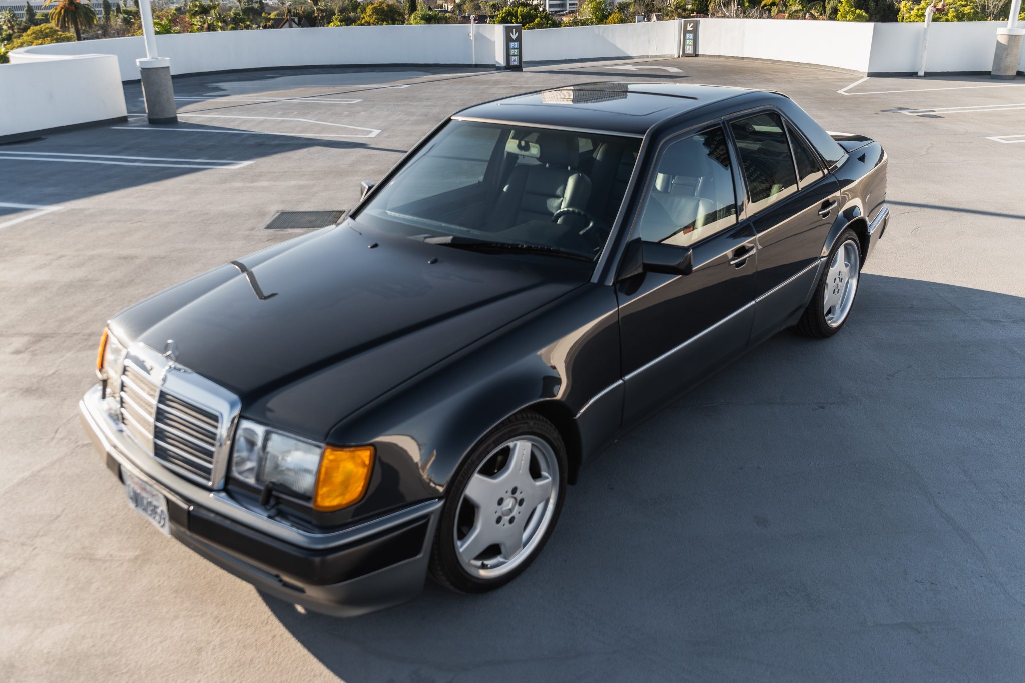 The 18″ AMG wheels are mounted with Bridgestone Potenza tires showing 2021 date codes. The car is equipped with Automatic Slip Control (ASR). and braking is handled by four-wheel ventilated discs.