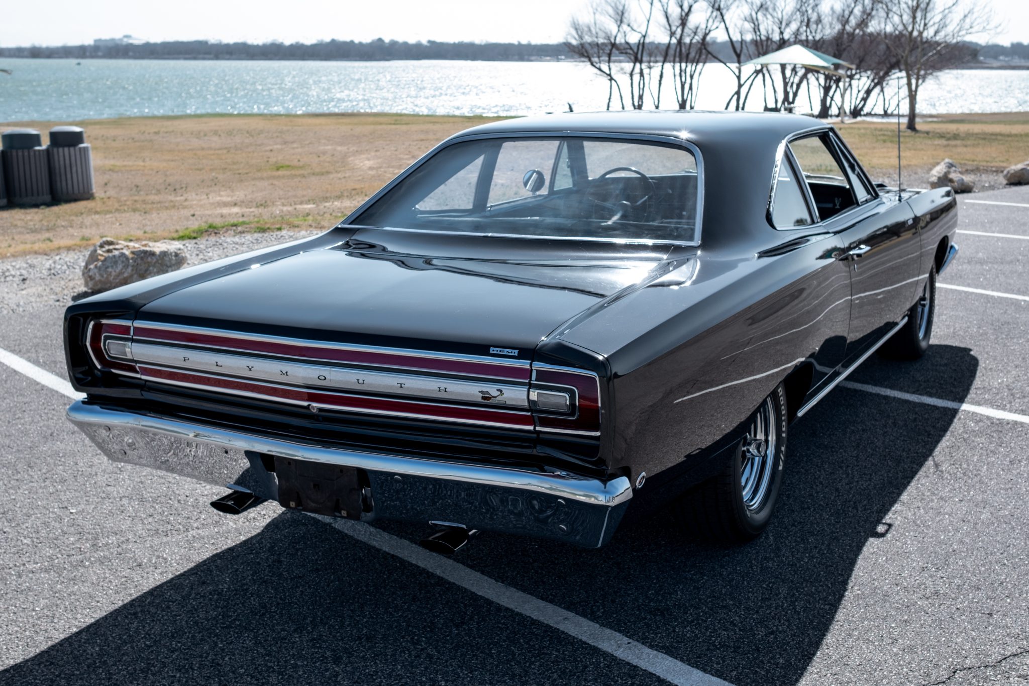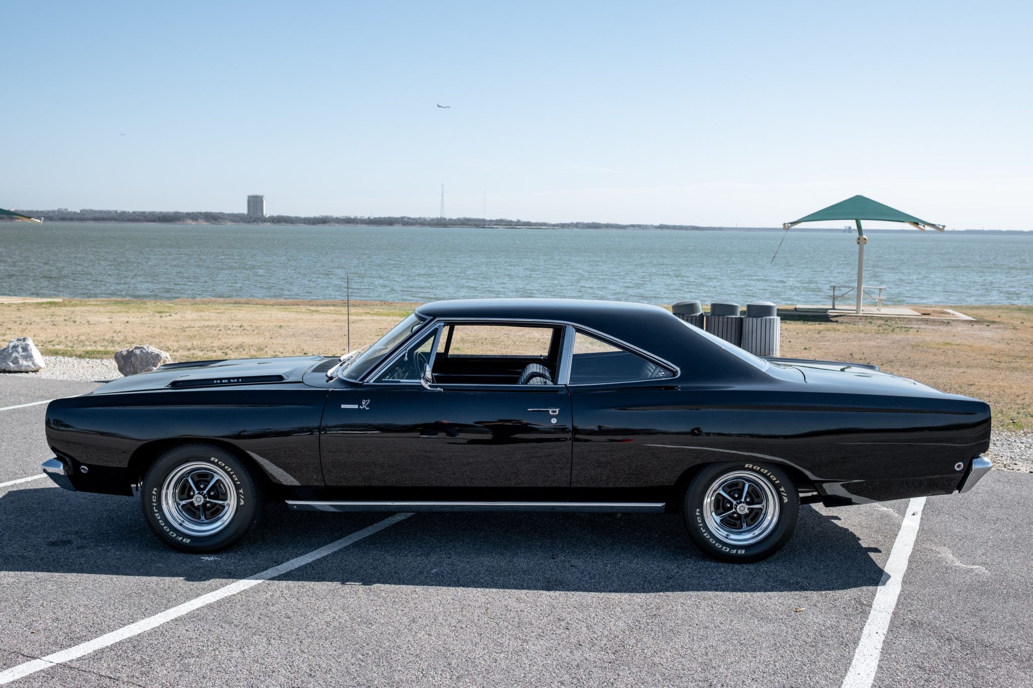 The 15″ Magnum 500-style wheels are mounted with 235/60 BFGoodrich Radial T/A white-letter tires. A full-size spare is mounted in the trunk. Braking is handled by power-assisted front discs and rear drums.