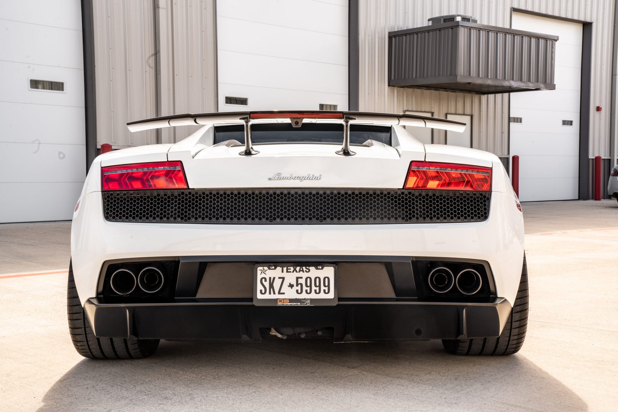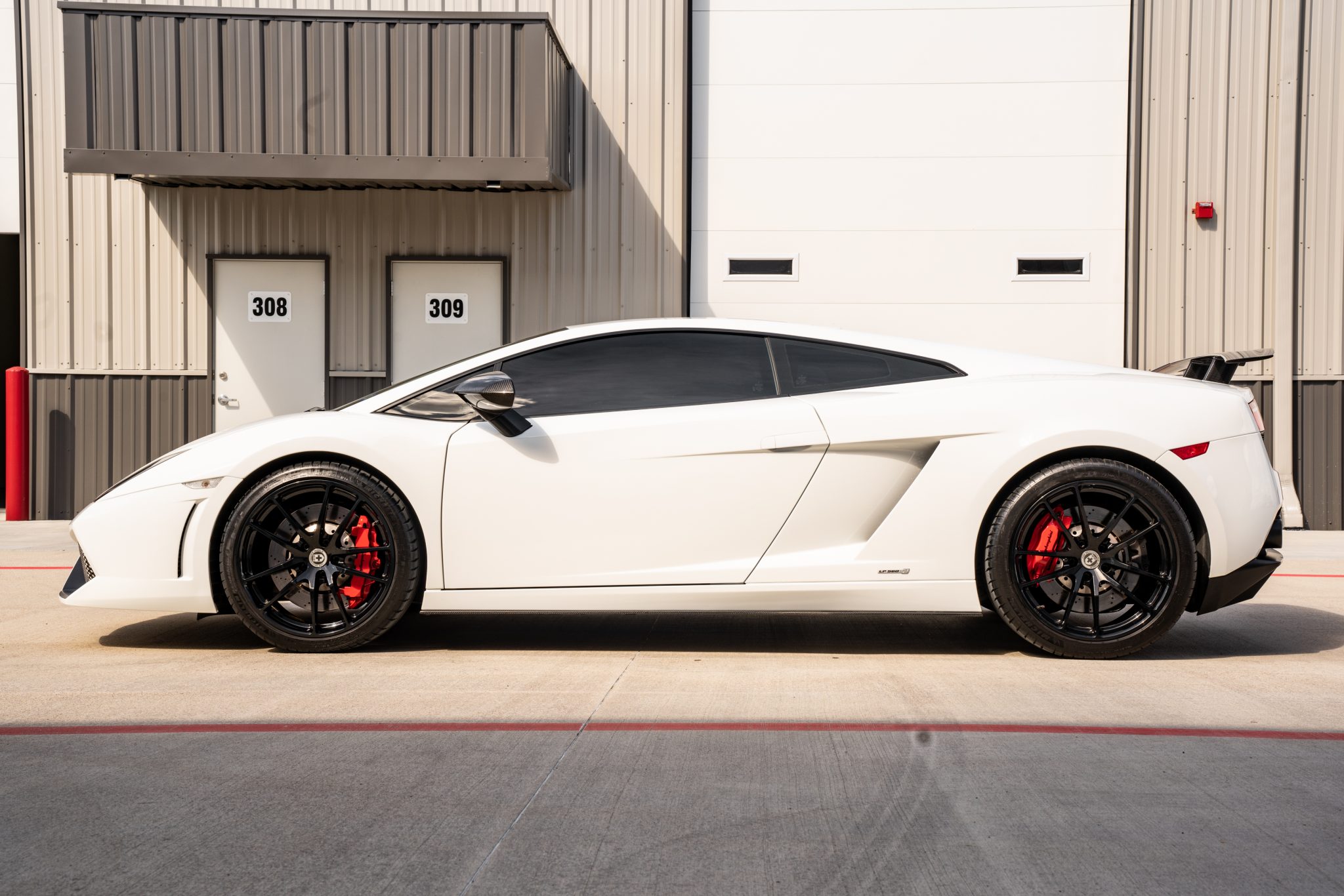 Black-finished HRE wheels are mounted with Michelin Pilot Sport 4S tires measuring 235/35 up front and 305/30 at the rear. The car is equipped with a front-axle lift system, and braking is provided by red Lamborghini-branded calipers over cross-drilled and ventilated rotors. The brake fluid was reportedly flushed in 2022.