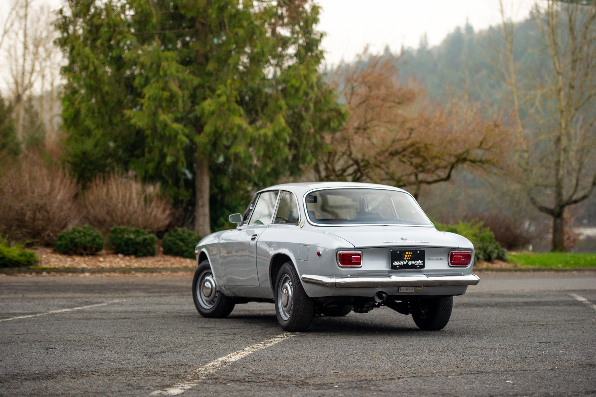 Gray 14″ steel wheels wear chrome Alfa Romeo hub caps and 185/70 Pirelli Cinturato tires that show 2020 date codes. A matching full-size spare and a Battaini jack are located in the trunk. Bilstein shocks have been added, and braking is handled by servo-assisted four-wheel discs.