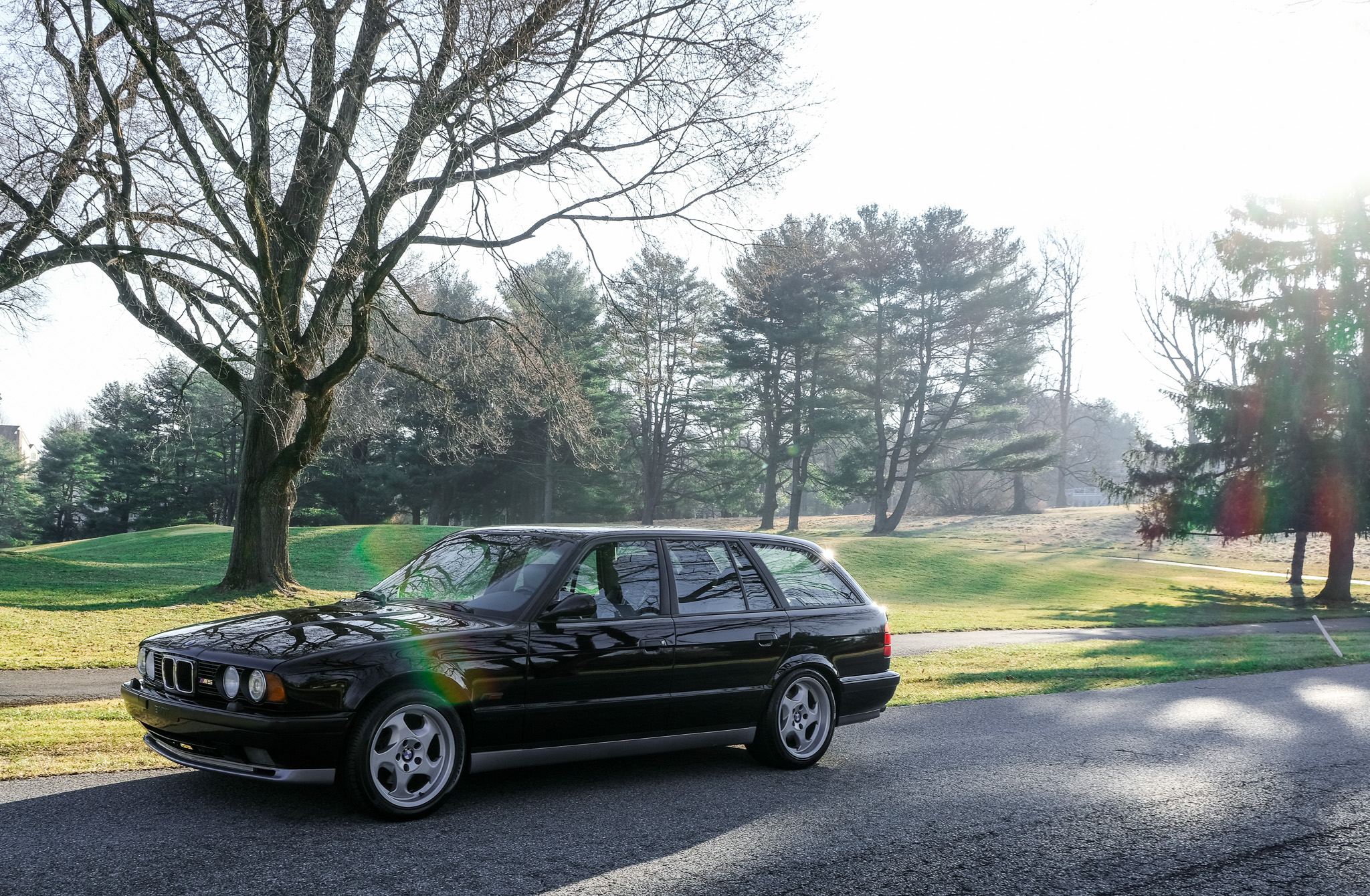 Staggered-width 17″ M-System II wheels feature “throwing star” covers and were mounted with 235/45 front and 255/40 rear Pirelli P Zero Nero GT tires in 2021. The front Electronic Damping Control (EDC) shocks were reportedly rebuilt in early 2021 by Nagengast of Gdańsk, Poland, and the rears were rebuilt there in 2023 and reinstalled in conjunction with repairs to the EDC system wiring. The thrust arms and rear suspension springs were also replaced under current ownership.