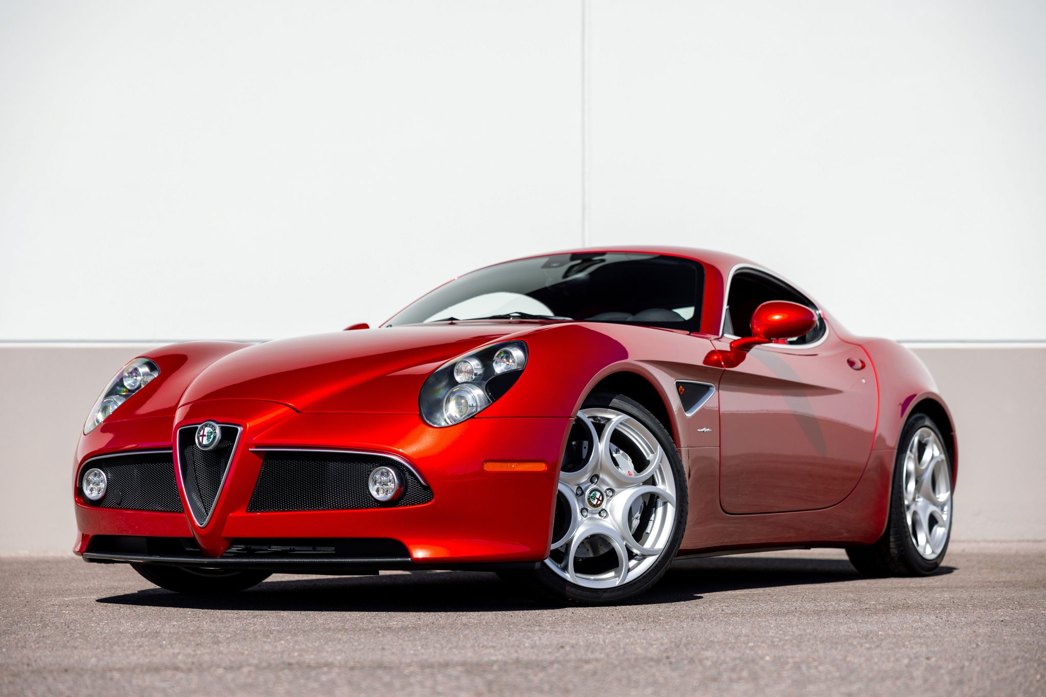 This example is finished in Rosso 8C Competizione (202/B) and features bi-xenon headlights, fog lights, and fender vents. Paint protection film was fitted by the factory. No accidents or damage are reflected on the Carfax report.